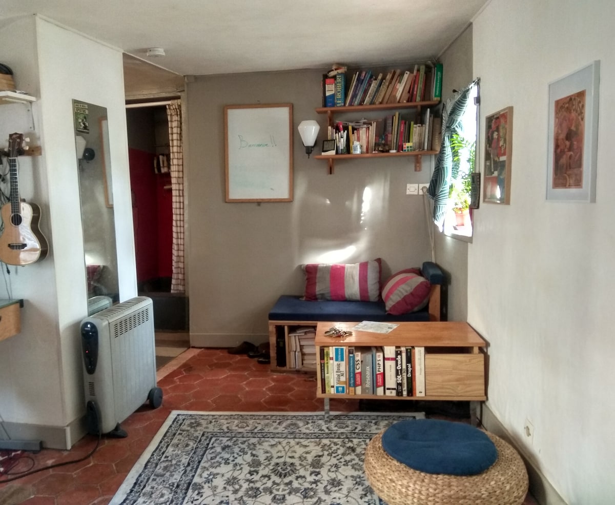 Маленька студійна кімната під дахами Парижа в районі Сен-Мішель. Розташована в затишній і безпечній вулиці та будівлі. Будівля датується сімнадцятим століттям і забезпечена красивою класифікованою сходовою кліткою (на яку ви зможете піднятися багато разів:)). Ідеально підходить для одинокої людини або пари, на вихідні або тиждень.