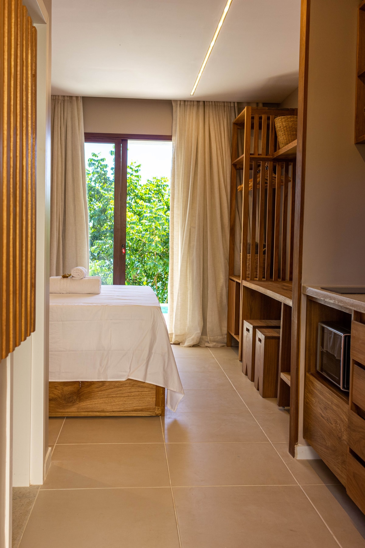 У верхній частині Морро-де-Сан-Паулу розташований оазис Canto das Águas, звідки відкривається вид на море та захоплюючий захід сонця. Від центральної площі до цього місця 15-20 хвилин (1 км) пішки, з кількома пагорбами та сходами. Нагорода – ексклюзивна природна краса та приватність. Ідеально підходить для пар, друзів або індивідуальних мандрівників, які бажають прокинутися з видом на блакитний океан. Ми знаходимося на висоті 80 м над рівнем моря, з виходом з кондомініуму до стежок до пляжів Порту-де-Сіма, Понта-да-Педра, Прая-да-Аргіла та Гамбоа.