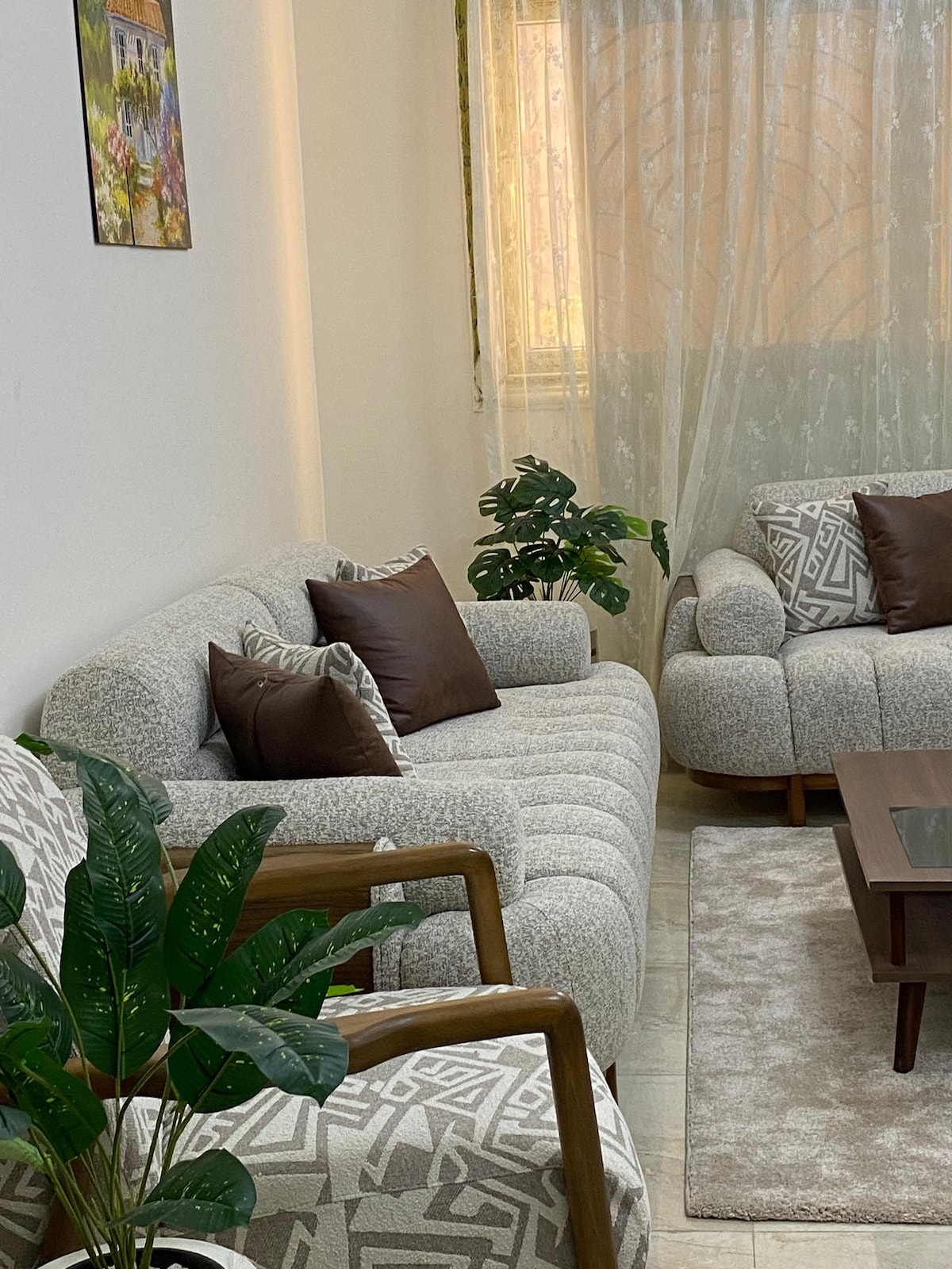 An economy option yet cozy, stylish and hygienic. A furnished apartment in Sheikh Zayed city, Egypt where there are no crowds and quality services are available everywhere. The apartment is located in a medium class local residential building only 30 minutes away from Giza Pyramids, the Egyptian Museum and other monuments. It's also surrounded by a lot of marketplaces, shopping malls and close to everything you need.