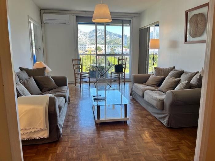 Ласкаво просимо до цієї яскравої та комфортабельної квартири, що знаходиться всього за 10 хвилин їзди від пляжів та Національного парку Каланки. Насолоджуйтеся панорамним краєвидом на Марсель і навколишні пагорби. Громадський транспорт і магазини знаходяться в межах пішої доступності, а до центру міста можна дістатися трамваєм. Квартира також розташована поблизу Сіте Радьоз, Стадіону Велодром та інших визначних пам’яток. Я з радістю прийму вас і надам усю необхідну інформацію для приємного перебування.