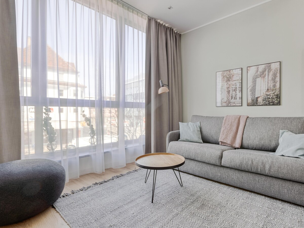 1-кімнатна квартира площею бл. 40 кв. м розташована на першому поверсі та в тихому місці на краю лісу. Перед будинком розташований приватний паркінг. У студії є розумний телевізор і безкоштовний швидкісний Wi-Fi. У вартість входять рушники та постільна білизна. Нова кухня повністю обладнана холодильником, морозильною камерою, керамічною плитою та духовкою, кавоваркою, кофемашиною Nespresso, каструлями, сковорідками, посудом, столовими приборами тощо.
