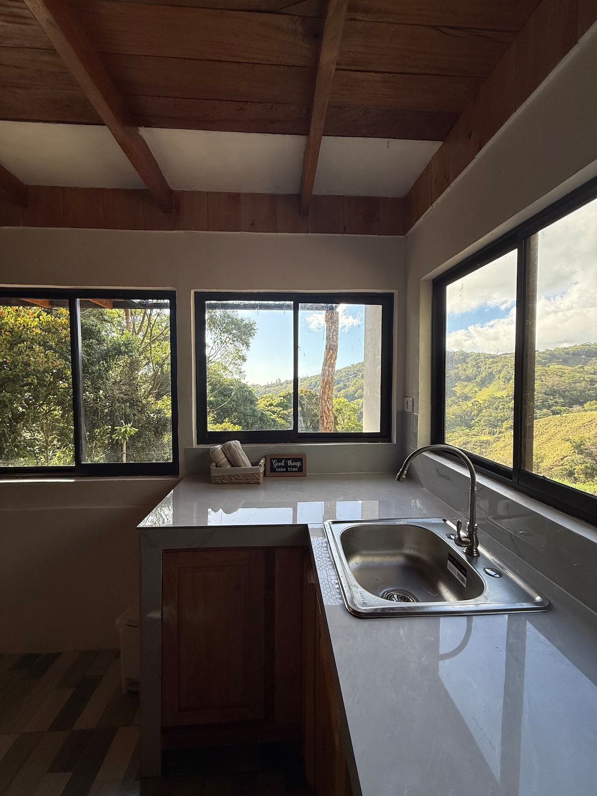 Попередження: вам не захочеться звідси виїжджати. Цей ексклюзивний бамбуковий гірський зруб, розташований на приватній території площею 4 гектари, пропонує повну приватність і надзвичайно мальовничу природу. Перебуваючи тут, ви насолоджуватиметеся захопливими панорамними краєвидами, що простягаються над горами, долинами, рівнинами, хмарами, які пливуть по небу, і Нікойською затокою. Сходи та заходи сонця розгортаються в постійно мінливому пейзажі світла та кольорів — вид, який справді відповідає фразі «вид на мільйон доларів».