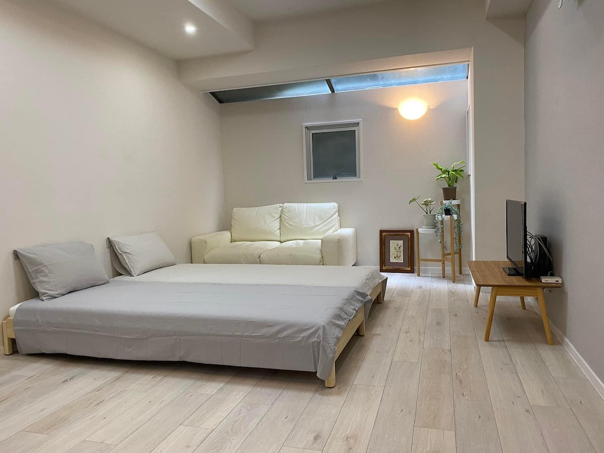 ■Традиційний x сучасний домашній кінотеатр і ванна кімната з туманним склом надаються в атмосфері японських книжкових магазинів у старі часи (концепція дизайну помешкання). ■Відомості про кімнату 1 поверх (4F) /90 кв.м. 3 спальні (4 односпальні ліжка, 1 ліжко queen-size *футон надається від 7 гостей) ■Доступ *приблизно до станції Ніппонбасі (3 хв) Дотонборі (5 хв) USJ (40 хв) Кіото (1 година) Насолоджуйтеся приватним перебуванням у центрі міста.
