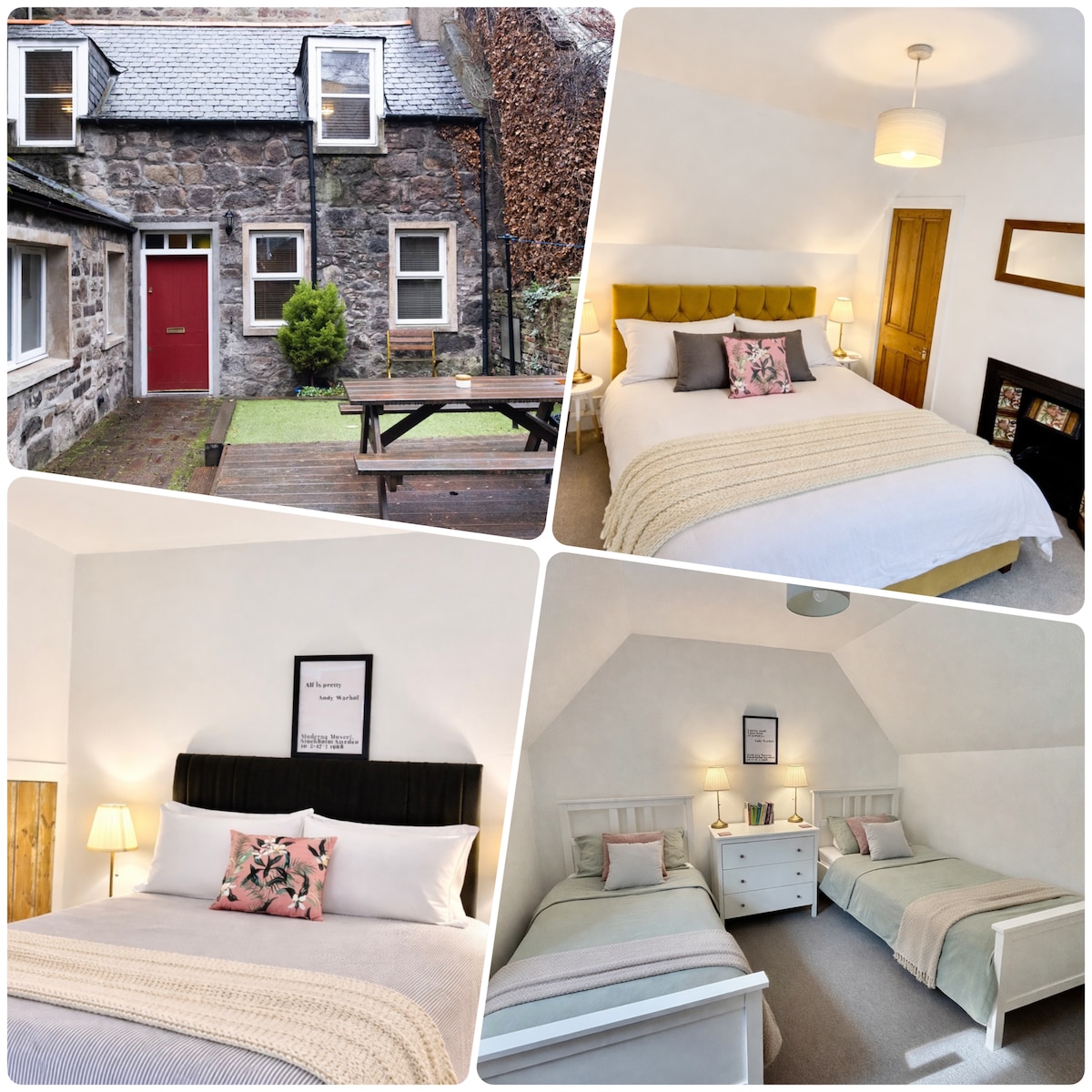 Few streets in Aberdeen match the quiet secluded Marine Terrace in Ferryhill designed by the city's most noted architect, Archibald Simpson. Our guests will have full use of the self-contained former "Servants Quarters" & we promise not to ring the bell expecting you to bring us G&T! Fully refurbished and styled by Pam of PamPicks, her quirky mix of vintage & curious items make it a super place to spend time with lots of unique pieces to take your eye....some of which she may let you buy!
