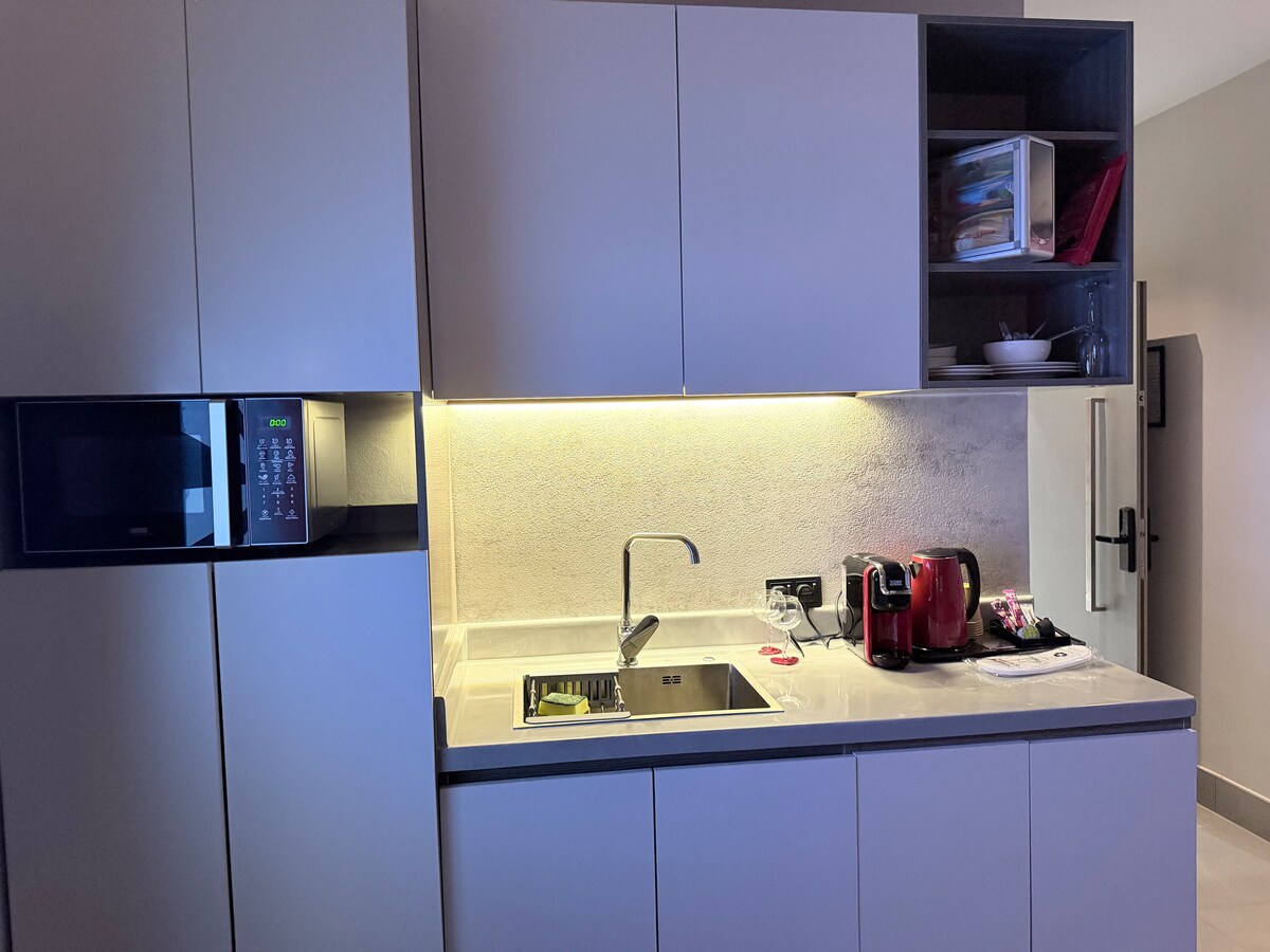 Сучасна студія зі спокійним дизайном, ідеально розташована в Південному Обхурі – недалеко від вишуканого комплексу з елітними кафе та ресторанами, в декількох хвилинах від моря. Завдяки жвавому розташуванню, до якого легко дістатися до всього необхідного, воно знаходиться всього в 5 хвилинах їзди від стадіону Аль-Джаухара (King Abdullah Sports City), що робить його чудовим вибором для відвідування заходів або матчів.