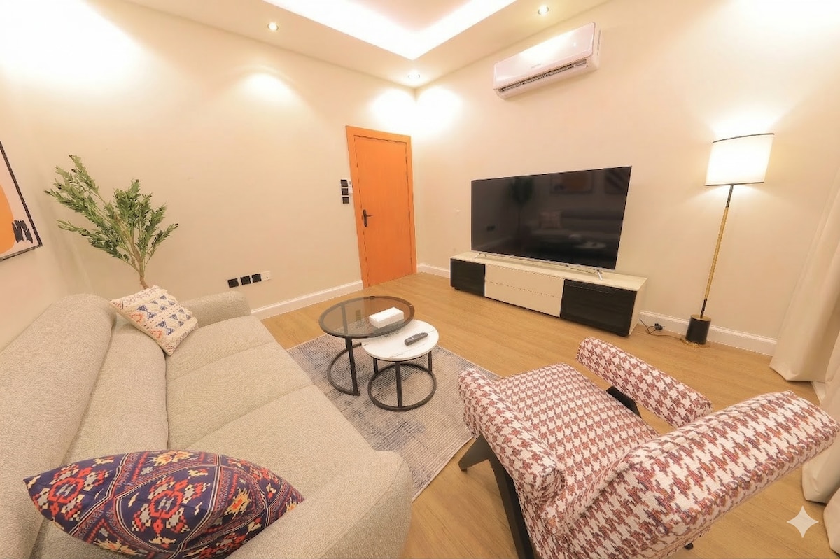 Welcome to your luxury apartment in South Obhur – Jeddah. The unit features a master bedroom, a stylish living room, a fully equipped kitchen, and a modern bathroom. Enjoy a 65" smart TV with Netflix and Shahid, plus fast, free Wi-Fi. Just 5 minutes’ walk to Obhur Corniche, and 10 minutes to Kokian Beach and Al-Jawhara Stadium. Located in a prime area near all essential services. Experience comfort, privacy, and luxury - your second home awaits.