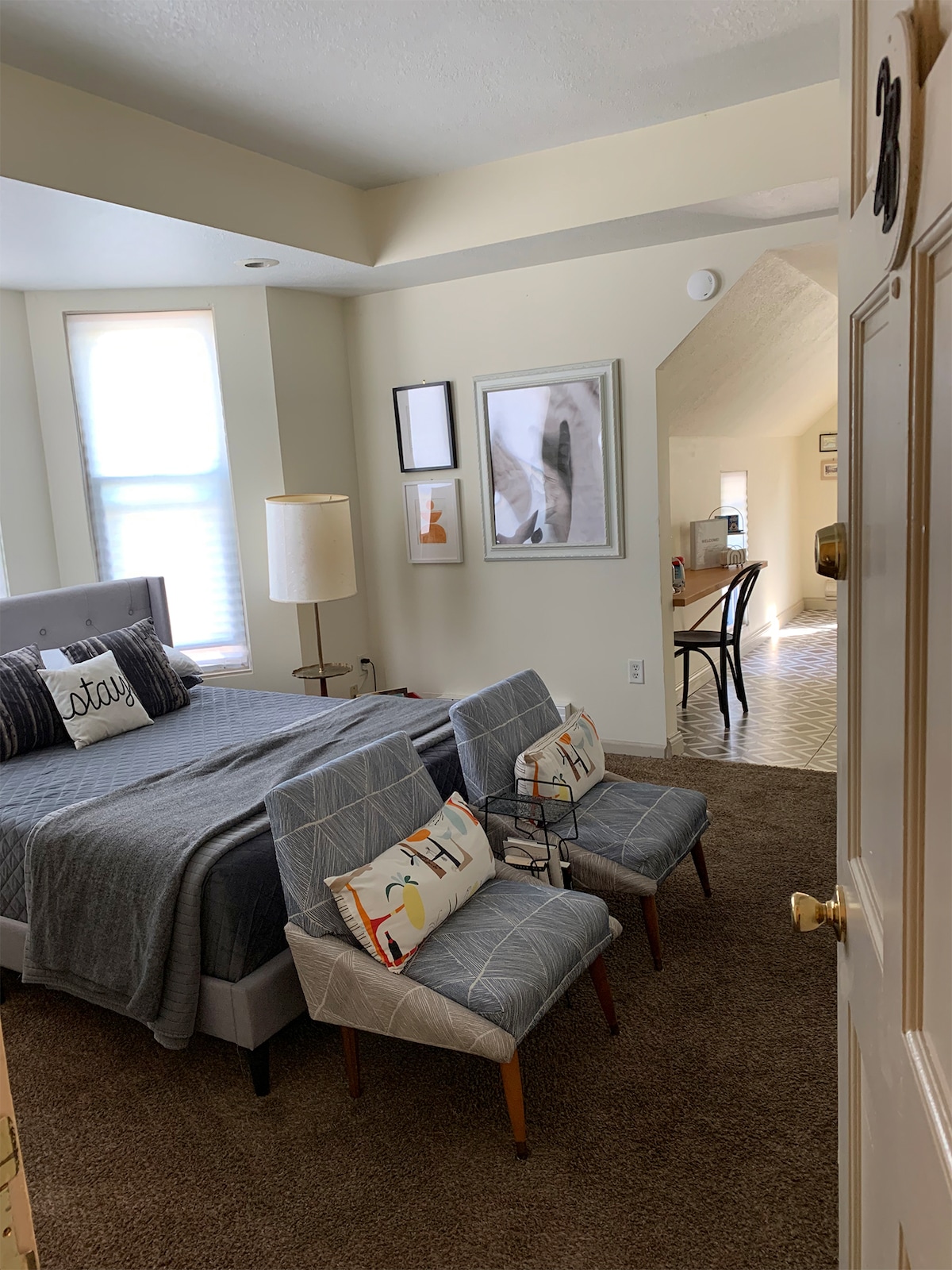 Відкрийте для себе приховану перлину району неподалік від центру міста, в історичному парку Вільямс-Вудленд! Гостюйте в цій приватній, напрочуд просторій студії нагорі всередині будинку на рубежі століть. Повністю мебльоване помешкання з модернізованим інтер 'єром, кухнею, ванною кімнатою та вітальнею з кімнатою для перегляду телевізора, вітальнею, спеціальним робочим простором, шафою та ліжком розміру Queen size, увіненим твердим матрацом з пінопластом.