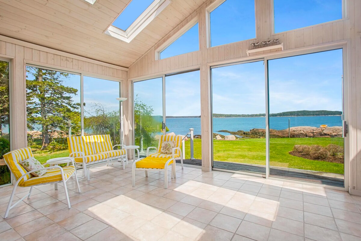 5 акрів газонів, садів і лугів, а також ласкавий скелястий пляж на солоному ставку Блу-Гілл, захищеній бухті Атлантичного океану. Будинок виходить на південь до води і виходить на розкішне чорничне поле, яке восени перетворюється на величний відтінок темно-червоного кольору. Зв 'яжіться з нами, щоб отримати додаткову інформацію або запитати про довготермінове бронювання. У будинку є дві спальні та ванні кімнати на головному рівні та дві додаткові спальні, ванна кімната та вітальня внизу.