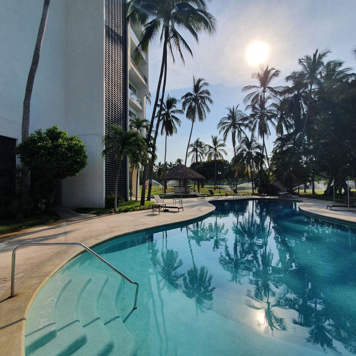 Цей лофт ідеально підходить для романтичної відпочинку або подорожі з найкращим другом! Нещодавно відремонтований лофт у віллах La Palma Diamante, розташований на бульварі Лас-Насьоніс, навпроти гольф-клубу Princess, в 5 хвилинах від пляжу Revolcadero. Тут є дуже великий басейн, ліжко розміру Queen size, маски для обличчя, кондиціонер, 2 халати, парковка, кухонне приладдя та великий балкон з видом на басейн, щоб насолоджуватися сонцем протягом усього дня.