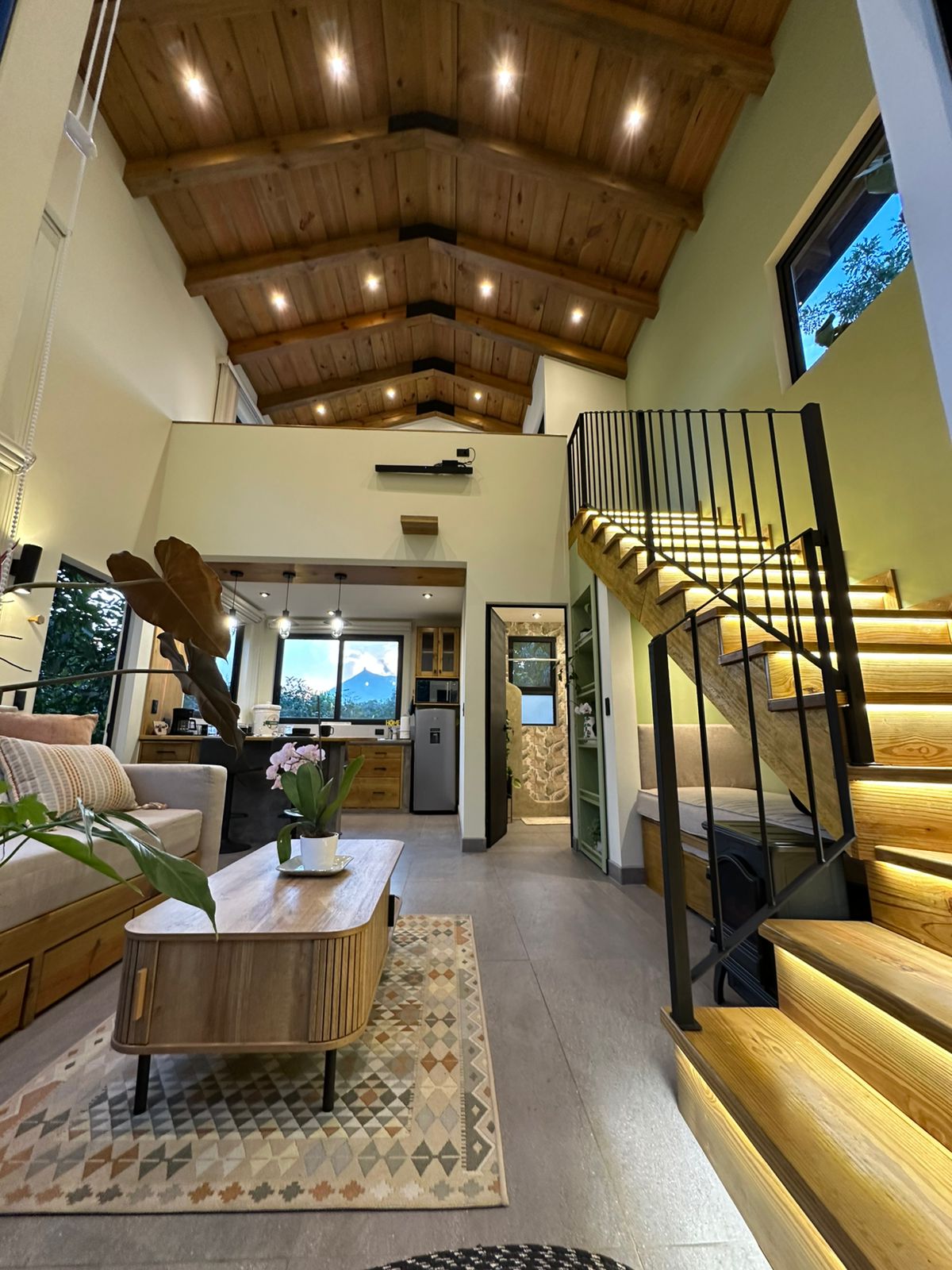 Лише для дорослих Квартира Vulkana – дизайн і приголомшливий вид на вулкан Фуего Двоповерхова квартира в розкішному курорті Вулкана поблизу Антигуа. Насолоджуйтеся сучасним дизайном у стилі джунглів, з вітальнею, кухнею та ванною кімнатою внизу, а також спальнею нагорі з захоплюючим видом на вулкан. Доступ до курортних зон включено. Ідеально підходить для пар або мандрівників, які шукають спокій, стиль і природу. Цілодобова охорона, Wi-Fi та паркування включені.