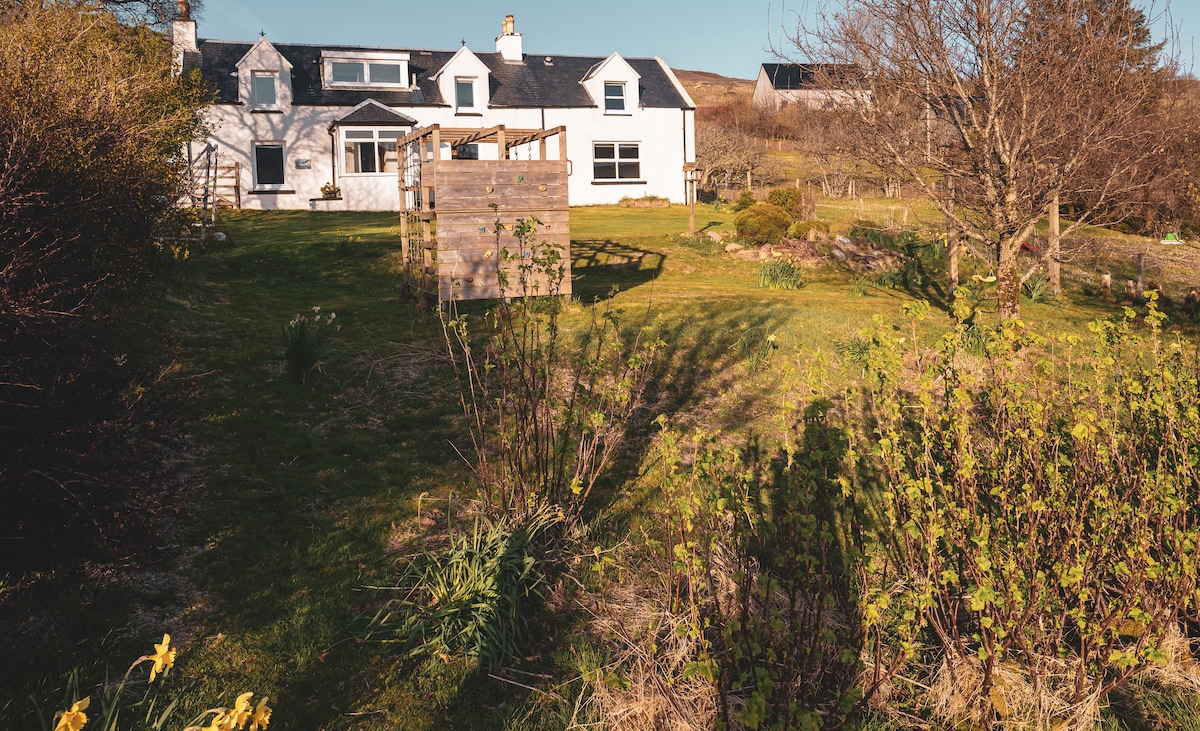 Наша квартира з однією спальнею ідеально розташована за 8 миль від Портрі на острові Скай. Завдяки розташуванню на морі та прекрасному виду на море та гори, це ідеальна база для вашого перебування на Скай. Наше сільське розташування спокійне та спокійне помешкання з прекрасним пляжем в 10 хвилинах ходьби, але всього в 15 хвилинах їзди від магазинів, ресторанів та барів у Портрі. У вітальні є диван-ліжко, тому в квартирі можуть розміститися до 4 дорослих. Ми також можемо надати дитяче ліжечко та дитячий візок.