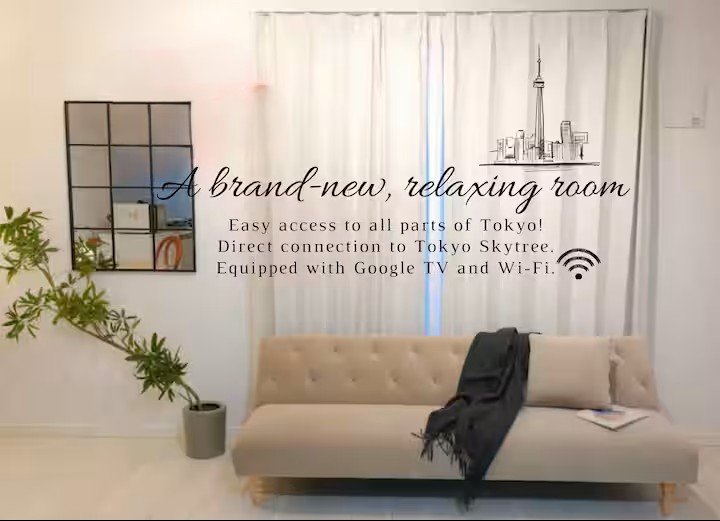 1 автобус від аеропорту Ханеда | 10 хвилин на поїзді до Асакуса, Скайтрі, Уено | Район з ресторанами | Максимум 4 особи | 2 поверх