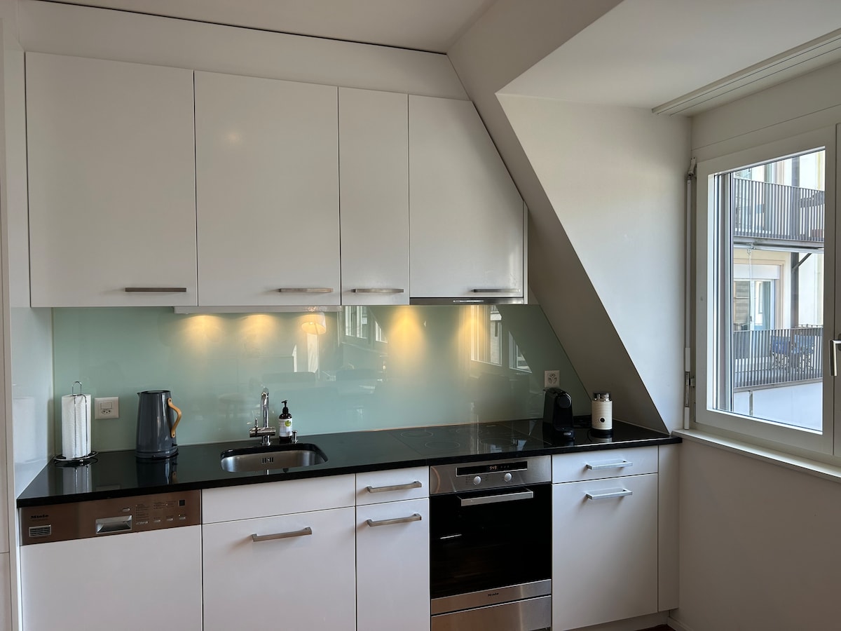 Високоякісна, зручна та практично мебльована, тихо розташована 2-кімнатна мансардна квартира (3-й поверх, без ліфта) в популярному районі Зефельд. Озеро, оперний театр та залізничний вокзал Стадельхофена, з якого можна дістатися аеропорт Цюріха за 20 хвилин, знаходяться в 2 хвилинах ходьби. Старе місто, Банхофштрассе та Цюрих Kunsthaus Zürich знаходяться в 10 хвилинах ходьби. Спокійний сон у надзвичайно великому ліжку 200 см x 200 см. Доступні вентилятор Dyson та очищувач повітря для алергіків.