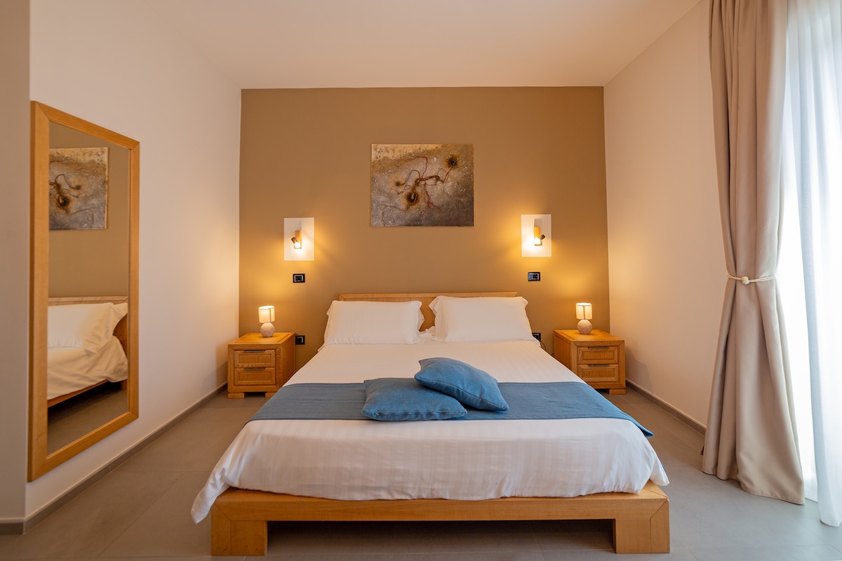 Кімната «Alchimia», розташована на першому поверсі, простора та вишукана, з елегантним декором, що поєднує в собі сучасний стиль і традиції. Зручне двоспальне ліжко з вишуканими тканинами та окрема ванна кімната з великою душовою кабіною та якісним оздобленням забезпечують максимальний комфорт. Включено: свіжоприготований сніданок зі справжніми інгредієнтами та доступ до спа-центру з басейном із підігрівом, гідромасажем, сауною та емоційним душем. Ідеально підходить для романтичного та омолоджуючого перебування