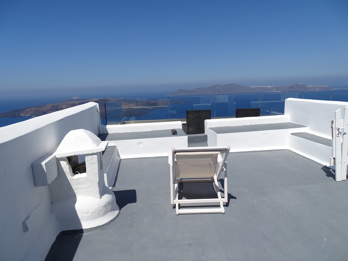 Наша квартира розташована недалеко від пляжу Вурвулос, в 5 хвилинах від центру Фіри, в 8 хвилинах їзди від аеропортута в 15 хвилинах їзди від Ії (на автомобілі). У ньому є спальня з невеликою міні-кухнею (обладнана умивальником, чайником, кавоваркою, електричним грилем, мікрохвильовою піччю та холодильником)та ванна кімната. Є зовнішня зона з видом на море, міні-ігровий майданчик, барбекюта парковка. Він ідеально підходить для пар, які люблять відпочивати та насолоджуватися природою. Ціна не включає державний податок у розмірі 8 євро за ніч.