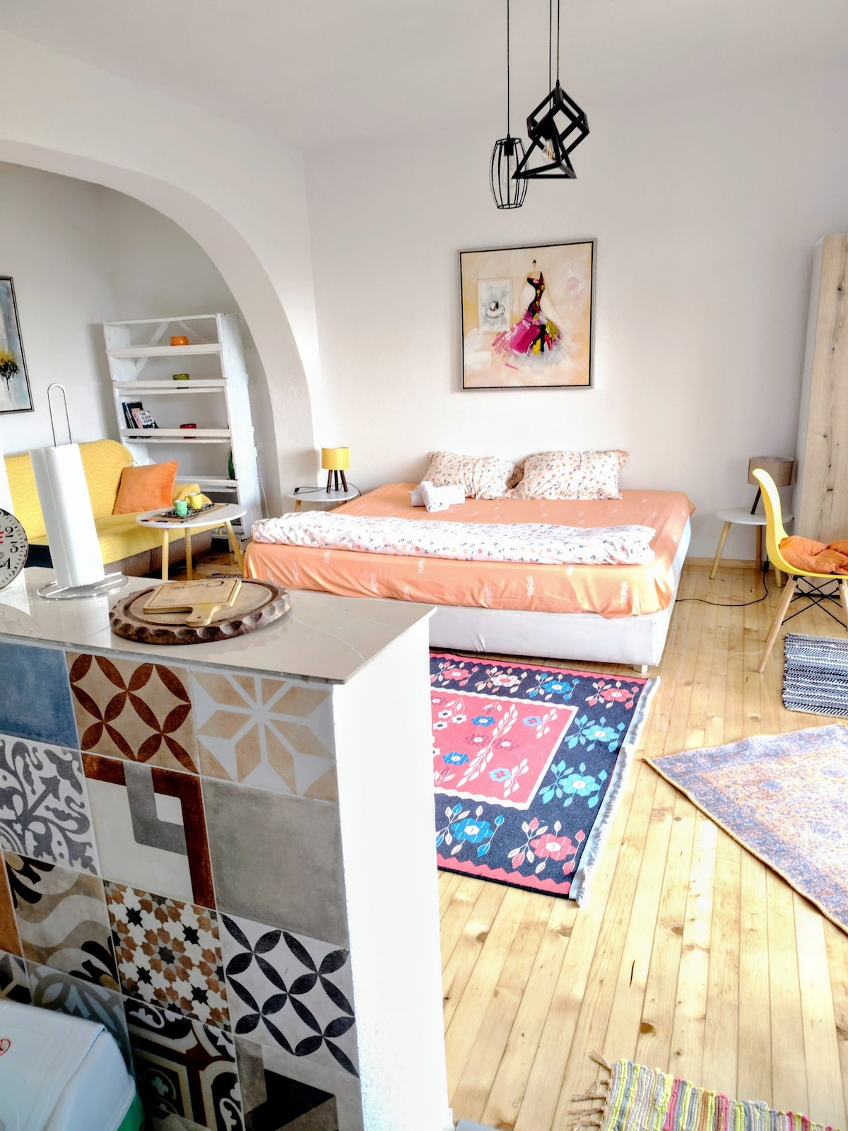 Красиво обладнані апартаменти з 1 спальнею та 1 ванною кімнатою пропонують ідеальне поєднання комфорту та сучасної та вінтажної елегантності з можливістю розміщення чотирьох гостей. Незалежно від того, чи ви перебуваєте в місті у справах, чи для відпочинку, ви знайдете все необхідне прямо біля дверей. Зручності: Центральний кондиціонер і опалення Пральна та посудомийна машини в помешканні Кавоварка та безкоштовна кава/чай Праска й прасувальну дошку Фен 1 двоспальне ліжко 1 диван-ліжко Телебачення Wi-Fi Безпечна будівля Гаряча вода