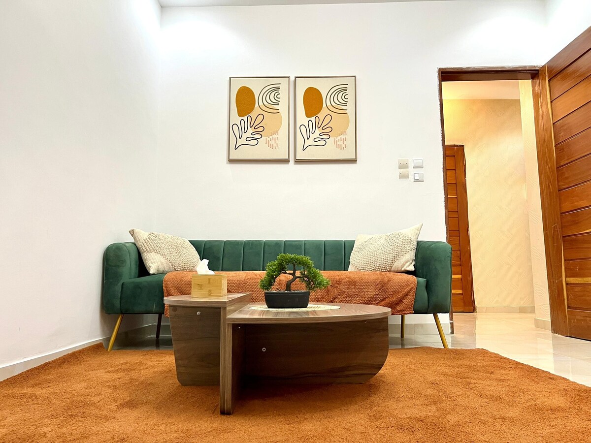 Détendez-vous dans ce logement calme et élégant.Bienvenue dans cet appartement moderne et raffiné, idéal pour les familles ou groupes d’amis. Il offre 1 chambres confortables, un salon spacieux et lumineux, une cuisine entièrement équipée, ainsi que 1 salles de bain modernes pour un confort optimal. L’espace, chaleureux et convivial, est parfait pour se détendre et partager des moments inoubliables. Profitez de cet hébergement élégant, situé à proximité de toutes commodités.