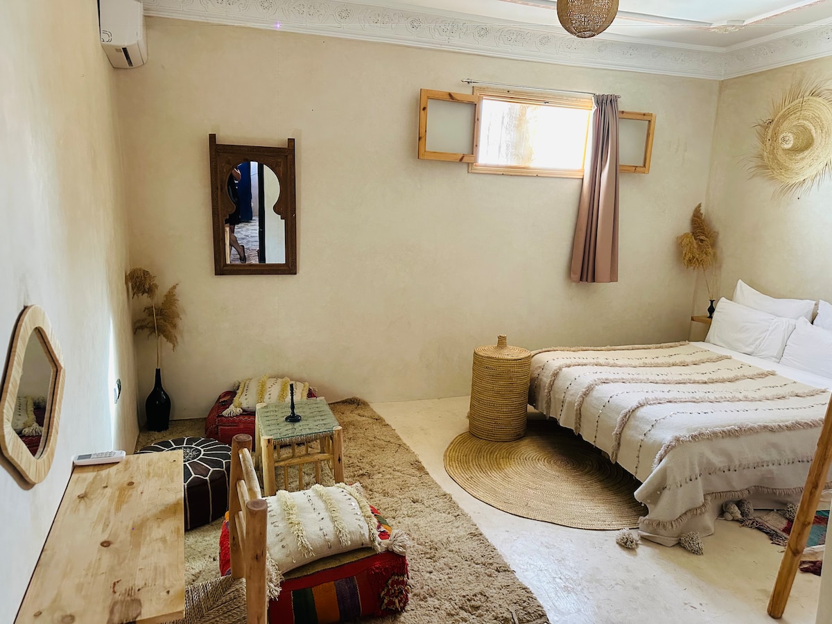 Ласкаво просимо до нашої затишної традиційної дерев’яної квартири-студії, розташованої всього в кількох хвилинах від прекрасних пляжів Тамраґт і Таґазут. Це помешкання ідеально підходить для двох осіб: тут є два односпальні ліжка та теплий автентичний декор, натхненний південним Марокко. Зупиніться в нашому гостинному закладі, відпочиньте на терасі та приєднайтеся до щоденних уроків серфінгу неподалік. Досліджуйте місцеві перлини, такі як дюни Тимлалін, ринок Сук-Ель-Хад та Парадайз-Веллі. Відчуйте спокій, культуру та серфінг в одному місці.