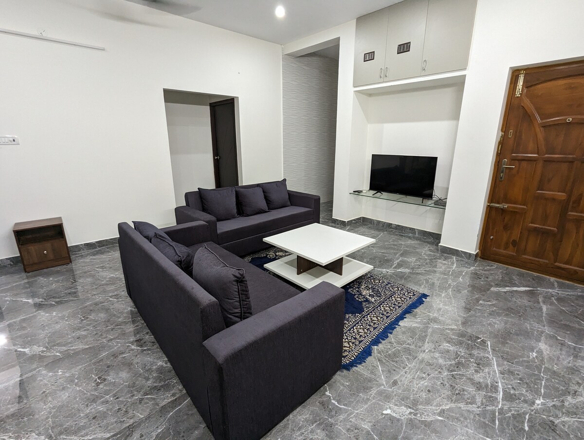 Bring the whole family to this great and brand new place located in a calm and peaceful surroundings. Distance from nearby major points: -Tambaram Railway station : 6 km -Airport : 11 km -Bharath University, Selaiyur: 0.8 km Nearest Metro: Airport Metro Available major online service providers:(Subject to availability) -Taxi/ Auto services: Rapido, Ola, Uber, RedTaxi, Chennaidroptaxi -Food delivery: Zomato, Swiggy -Fresh Veg/ Groceries delivery: Swiggy, Zepto