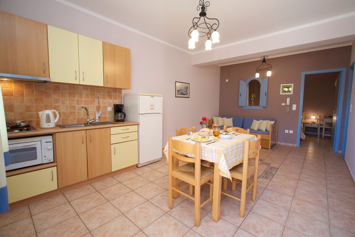 Апартаменти Марі-Крісті побудовані на березі моря на околиці села Порос в прекрасній Кефалонії. Це окреме помешкання для відпочинку абсолютно ідеально підходить для сімей або групи друзів і, безумовно, запропонує незабутнє перебування, особливо для людей, які шукають спокійне та спокійне середовище. Відвідувач чарується неповторним видом на море з балконів. Ваш будинок буде просторою квартирою площею 60 кв. м з 1 окремою спальнею, повністю обладнаною кухнею, великим кутовим балконом та ванною кімнатою.