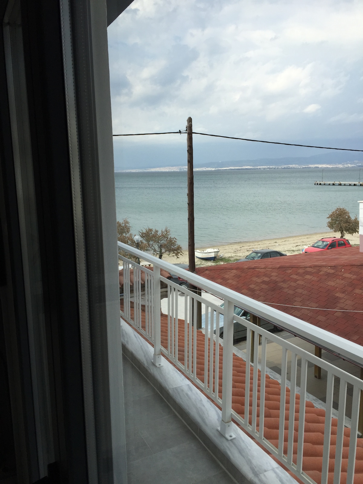 This beachfront apartment features a spacious balcony with beautiful views of Thermaikos Bay and Thessaloniki. It includes a large, cozy living room with a sofa that converts into a double bed, as well as a kitchen with an additional sofa. The small yet comfortable bathroom has a shower and a tap for everyday needs. The kitchen is equipped with a mini oven and complimentary laundry facilities. Additionally, there is unlimited 300 mbps Wi-Fi. The apartment has been fully renovated.