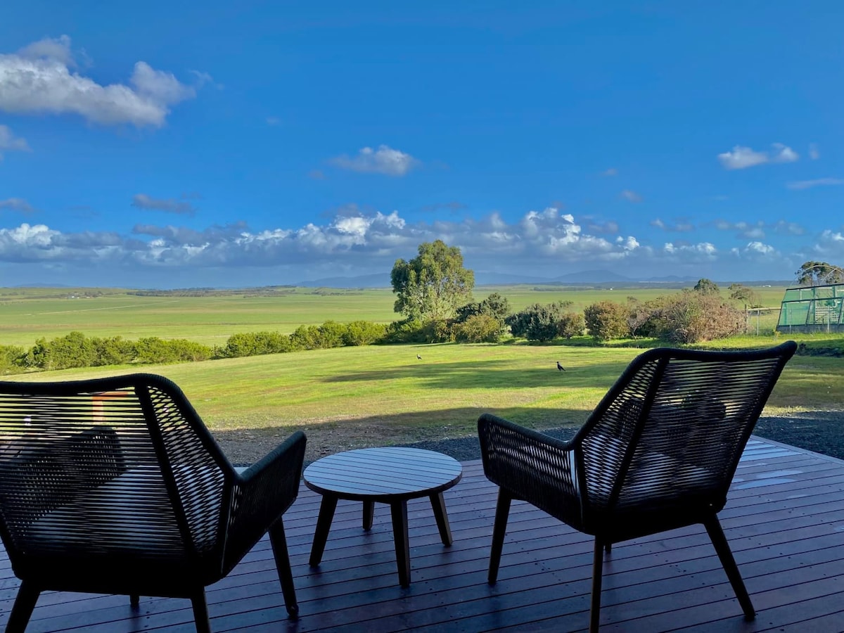 « Красиві краєвиди, приголомшливе розташування, чудова якість і сучасний сільський декор» - L.2025 Ми запрошуємо вас насолодитися цим бутиковим романтичним помешканням для 2 осіб з дивовижним 180-градусним видом на пагорби до Фіш-Крік і за його межами з кожного вікна. Просторе та автономне помешкання з сонячним сучасним комфортним мистецьким інтер 'єром. Поруч із Промонторі Вілсона, Фіш-Крік, Фостером, затокою Варата, виноробнями та пляжами. Ідеальна база для вивчення Південного Гіппсленда.