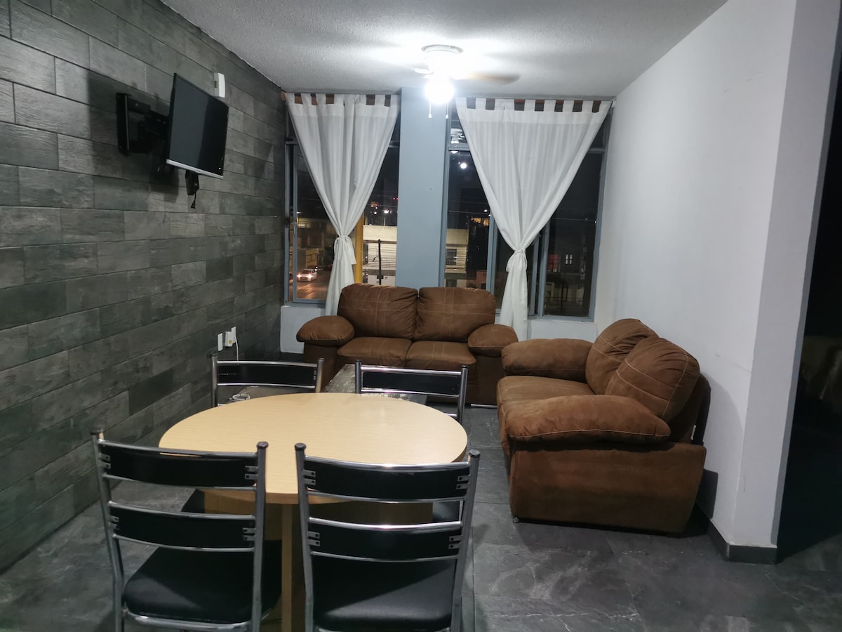 Центральна квартира з легким доступом і чудовою мобільністю до будь-якої частини міста. До ваших послуг повністю обладнана кухня, 2 спальні та парковка за межами помешкання всього за кілька кроків. Розташований менш ніж за 10 хвилин ходьби від парку Хардін-де-Сан-Маркос та історичного центру міста, що робить його ідеальним для відвідування Національного ярмарку Сан-Маркос (квітень-травень). Квартира знаходиться на 3-му поверсі. Власники живуть на 2-му поверсі, що дозволяє надавати персоналізовану допомогу. На першому поверсі є міні-маркет, а поруч – пральня.
