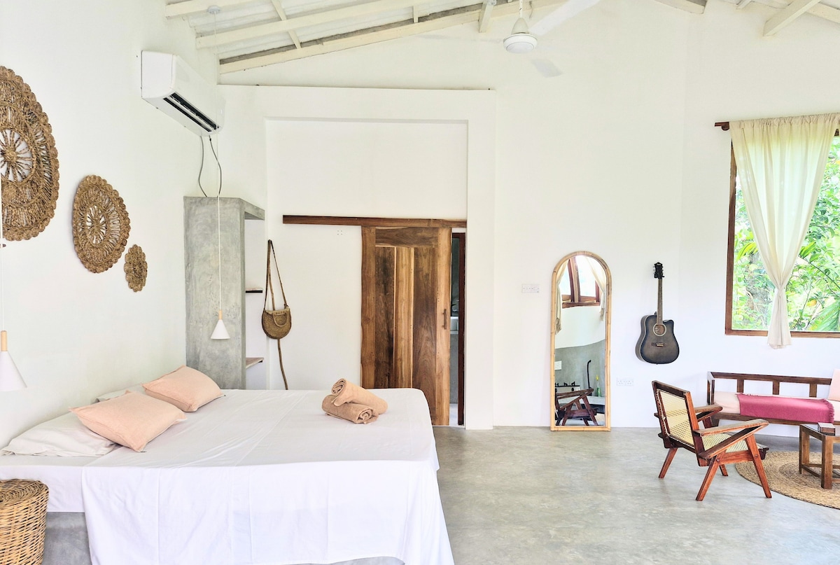 Relax and unwind in this modern, one-bedroom villa located in the heart of Ahangama. Just a short walk from the popular Marshmellow surf spot, this cozy space is perfect for surfers or anyone looking to enjoy the beach and the laid-back coastal vibe. Enjoy your morning coffee on the terrace or relax in the backyard surrounded by tropical greenery. Whether you want to surf, explore nearby cafes, or simply take it slow, this villa is the perfect spot for a peaceful and easy-going stay in Ahangama.
