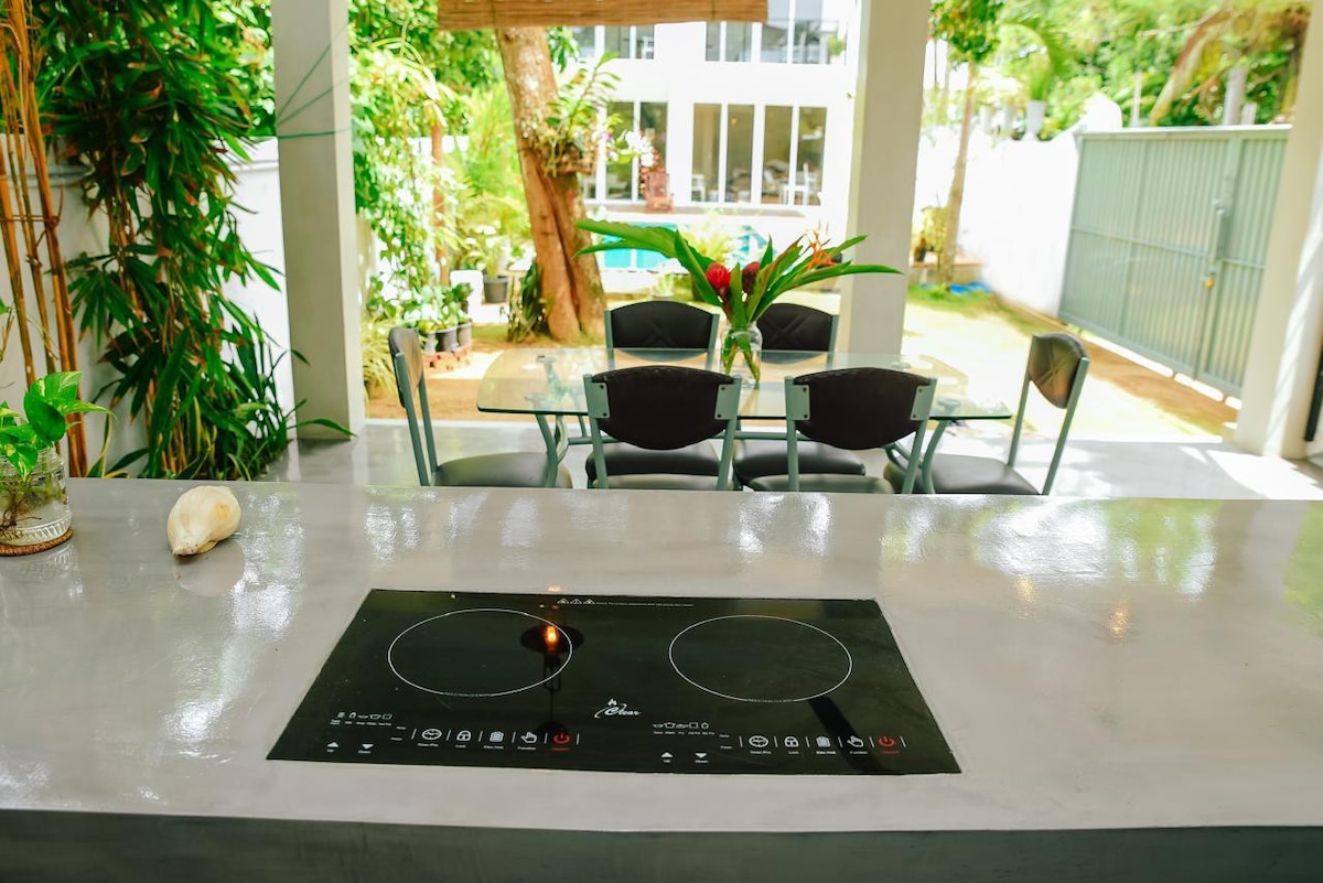 Відпочиньте на цій приватній розкішній тропічній віллі на 10 осіб, у коворкінгу з кондиціонером та приватному басейні з шезлонгами. â???????? ✔️ 7 хвилин пішки до пляжу Кабалана ✔️ Кондиціонер у вітальні та спальнях ✔️ Повністю обладнана кухня ✔️ Оптоволоконний Інтернет (понад 250Мбіт/с) До ресторанів можна дійти ✔️ пішки ✔️ Щоденне прибирання будинку з 2 персоналом ✔️ Смарт-телебачення та Netflix ✔️ Самостійне прибуття за допомогою цифрового замка ✔️ Доступне барбекю Ідеально підходить для відпочинку, роботи та сімейних розваг!
