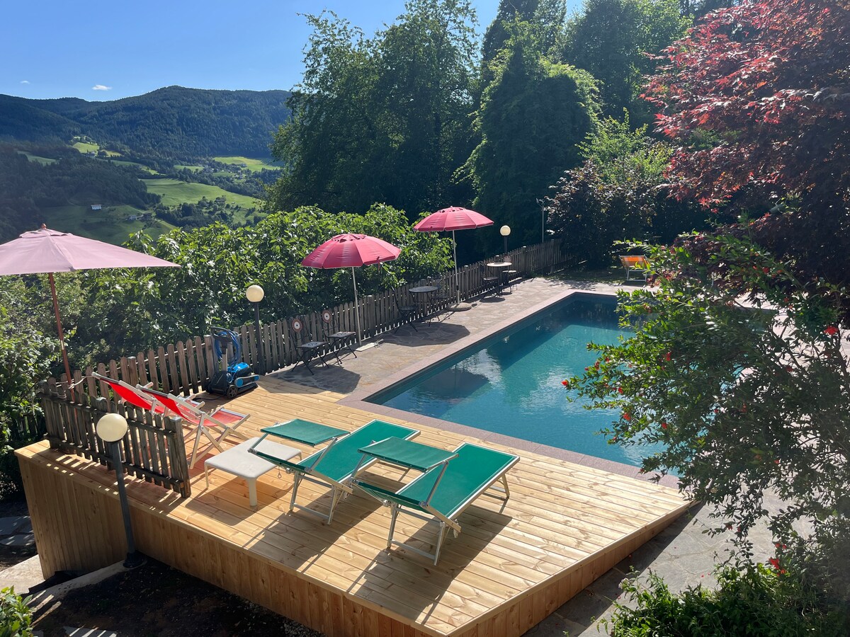 Сучасний будинок із 2 спальнями, 2 ванними кімнатами та диваном-ліжком на 5 гостей. Повністю обладнана кухня з духовкою та посудомийною машиною. Переваги: гідромасажна ванна з видом на гори, 2 супутникові телевізори, високошвидкісний Wi-Fi, аудіосистема, пральна машина та сушильна машина. Ідеально підходить для подорожей до озера Кальдаро, походів або велосипедних екскурсій. Безкоштовна парковка та безкоштовна зарядна станція для електромобілів. Забронюйте зараз і насолоджуйтеся комфортом, розкішшю та природою!