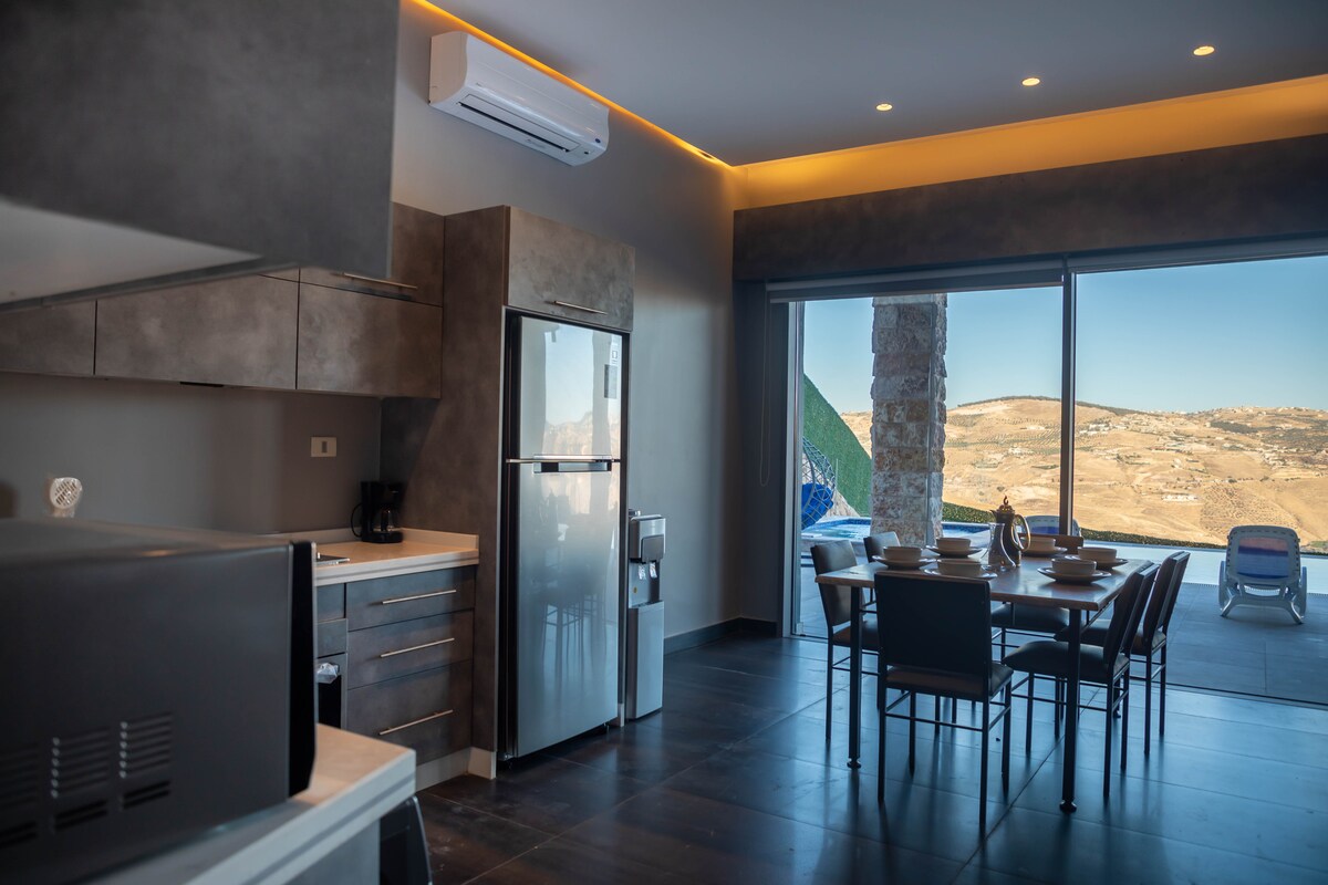 Шале розташоване на горах між Джерашем і Айллуном, оточене дубами, на висоті 1200 м (над рівнем моря). Через балкони та вікна відкривається вид на гори Аммана та Аджлуна. Це місце характеризується тишею та високою приватністю. Перебуваючи в нашому шале, ви можете відвідати пам 'ятки міста Айлун і Джераш, оскільки воно знаходиться в 20 хвилинах їзди від замку Айлун на автомобілі та в 15 хвилинах їзди від римського міста в Джераші.