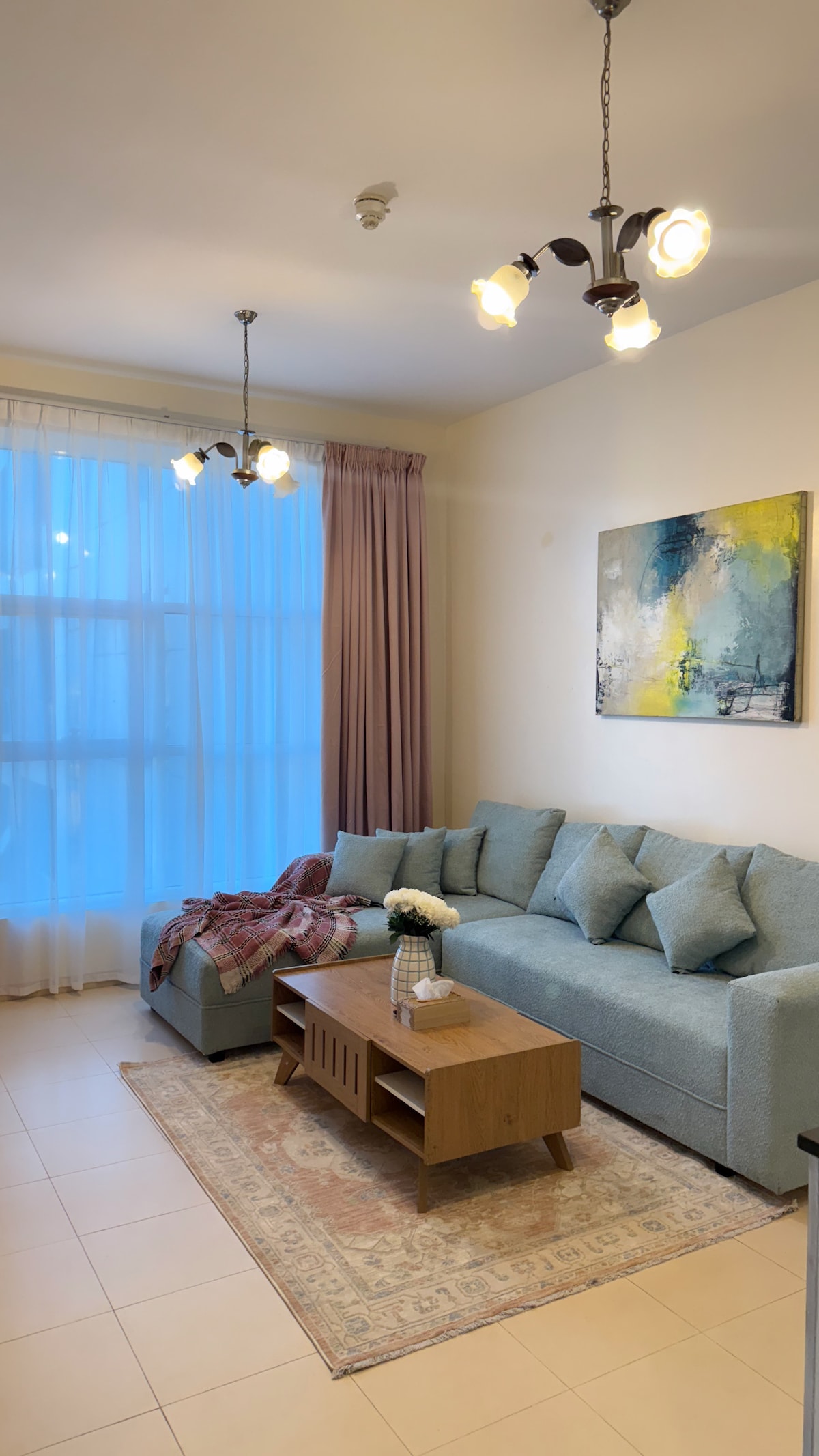 Красива квартира з 2 ванними кімнатами, загальною вітальнею та кухнею. Центральний кондиціонер Ліжко та матрац Ikea Приліжковий столик Мобільний зарядний пристрій і лампа Альміра та туалетний столик Доступні 3 односпальні додаткові матраци Робочий стіл і представницький стілець Обідній стіл для чотирьох осіб Повністю гігієнічна й чиста Диван і 65-дюймовий телевізор із Netflix, Amazon Prime Video плюс 200 телеканалів Безкоштовний Wi-Fi Духовка, плита, змішувач соку, тостерний холодильник Пральна машина Басейн Тренажерний зал Приватний паркінг