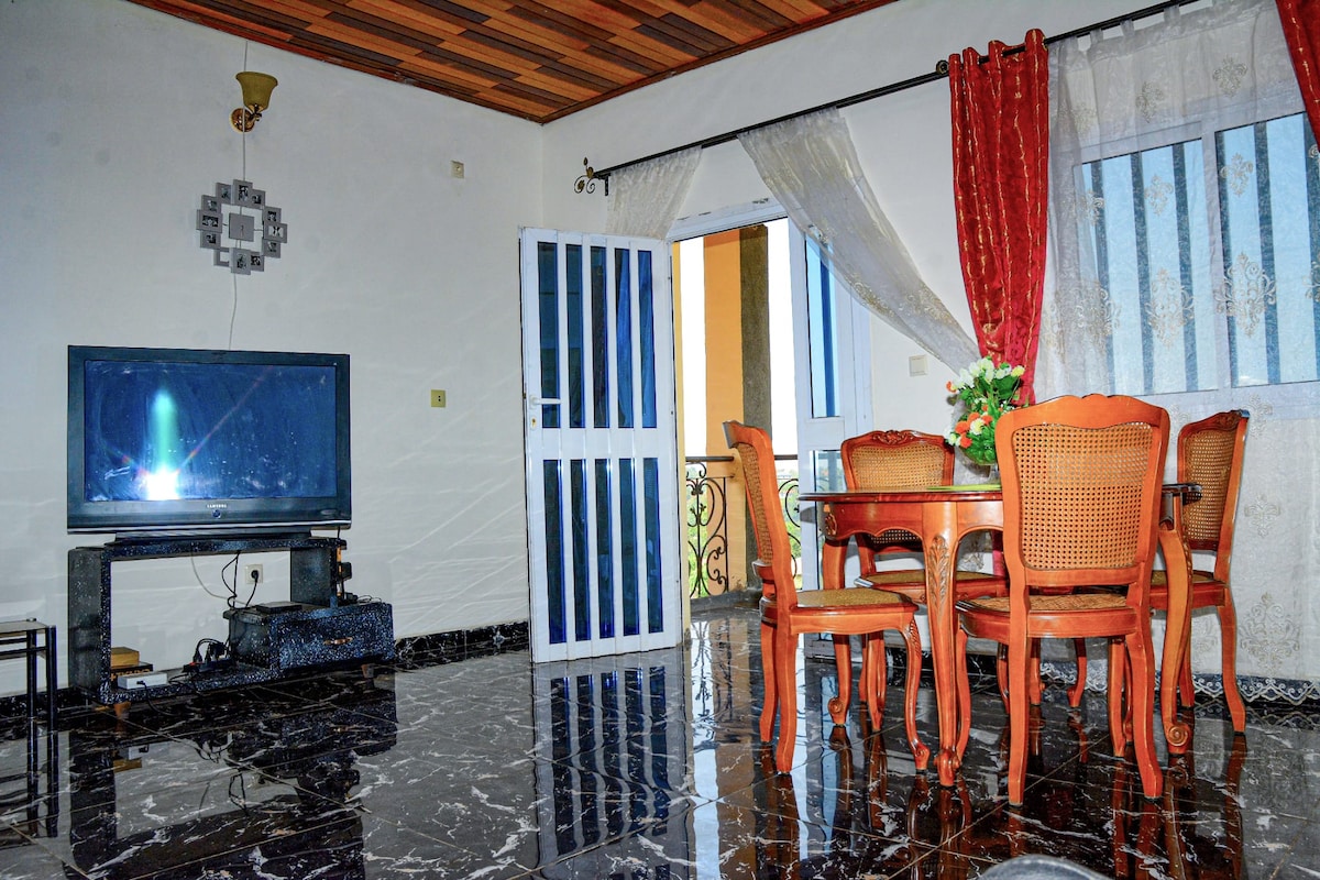Насолоджуйтеся спокійним перебуванням у цій чарівній квартирі з 2 спальнями, розташованій у тихому районі Яунде. Ця оселя надає вам усі зручності для приємного перебування. 2 комфортабельні спальні Кухня обладнана мікрохвильовою піччю, холодильником. Пральна машина доступна для тривалого перебування Зручне паркування Прибирання між перебуваннями Це помешкання — оаза спокою, водночас розташоване недалеко від інших частин міста.