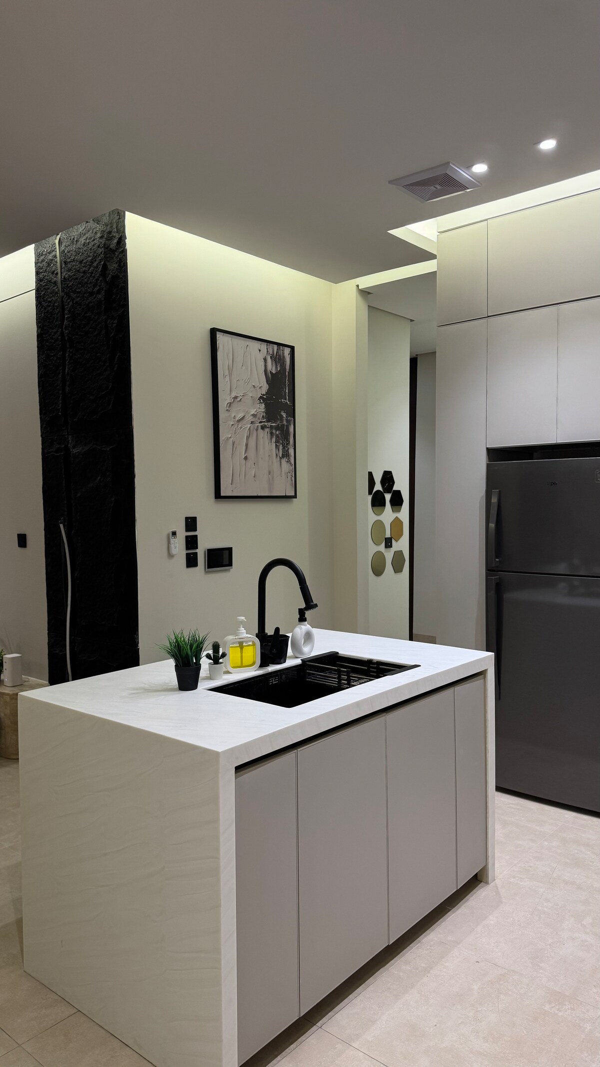Насолодіться розкішним перебуванням у люксі Ora Дві спальні в центрі Ель-Хубара У кімнаті є домашній кінотеатр зі 100-дюймовим екраном і звуковою системою, кавовий куточок з еспресо-машиною та професійна машина для попкорну, щоб створити справжню кінотеатральну атмосферу 🍿🎥 Різноманітні ігри для розваг гостей 🎲 і елегантна гойдалка в приміщенні І повністю обладнана кухня з найновішими електроприладами 👩🍳 У головній кімнаті є 65-дюймовий дисплей. Особливе розташування поблизу виставкового центру Dhahran Expo, набережної Аль-Ракка та парку Аль-Муса. Самостійне прибуття для повної приватності та комфорту. Ідеально підходить для сімей або бізнес-мандрівників