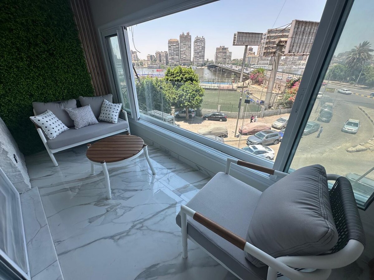 Ця яскрава затишна квартира гарантує найкращий вид на річку Ніл, де ви можете відпочити та насолодитися видом на заход сонця в 127 м з 3 спальнями, розташованими в історичній будівлі XX століття в дуже безпечному районі з дружнім сусідством. місце найкраще розташоване до більшості туристичних об 'єктів і нічних зон від 2-6 км до Єгипетського музею, Каїрської вежі, мечеті Мухаммеда Алі, центру Каїру,Замалека, Мохандессина , в 1 хвилині ходьби до супермаркету, прань , ресторанів , аптек