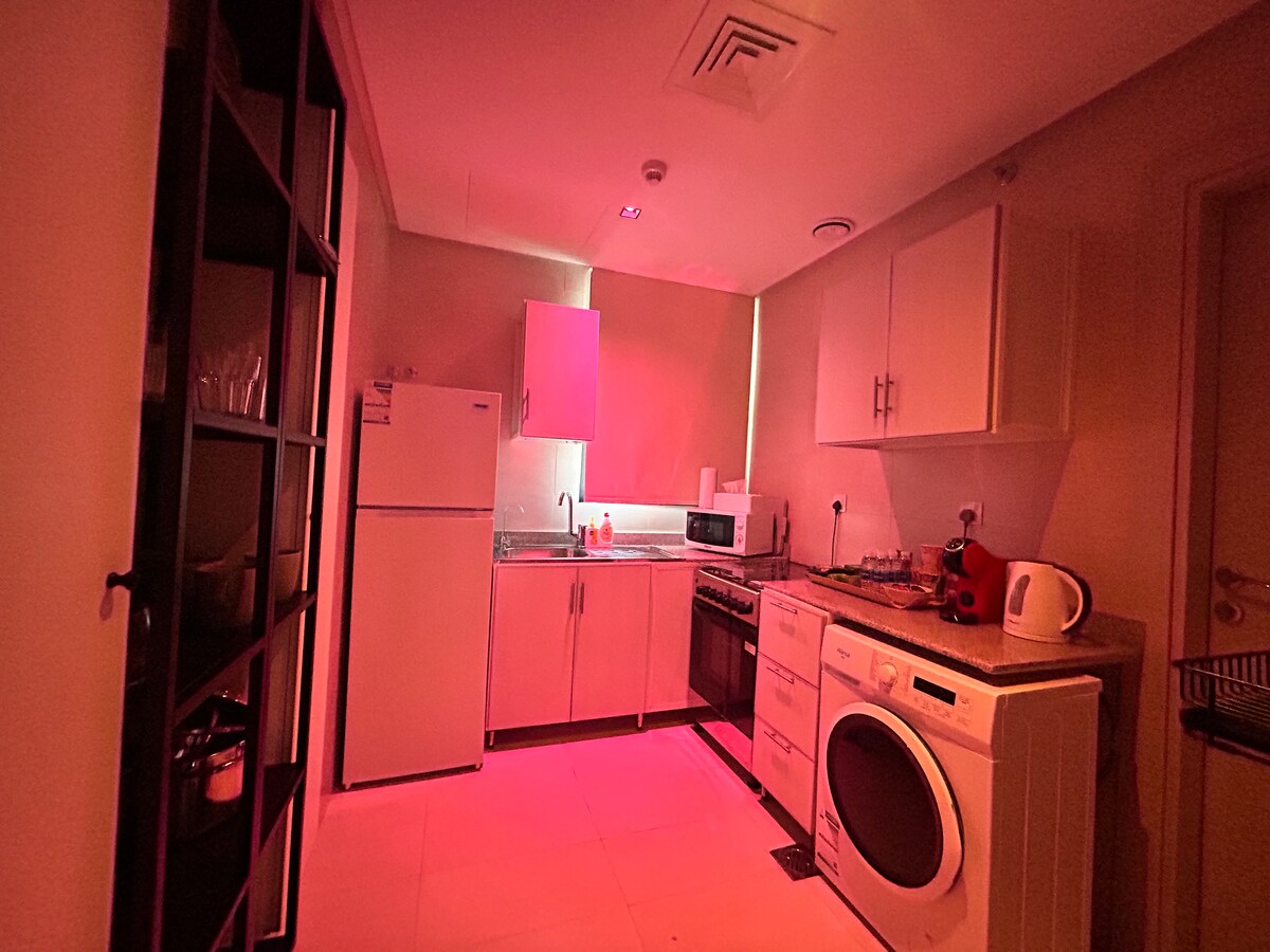 Відпочиньте й розслабтеся в цій затишній і стильній оселі з 2 спальнями, повністю мебльованій квартирі в Салмії Гнучкий час прибуття та виїзду Телевізор QLED✅ 98 дюймів 🎥 ✅ ДИНАМІК SONY HTA9 DOLBY ATMOS Формація Duo від✅ Bowers & Wilkins Ліхтарі ✅ Philips Hue ✅ Apple TV, Gogle TV, ✅ 65-дюймовий телевізор 4K UHDSmart у головній спальні 🛌 Високошвидкісний Інтернет✅ 5G ✅ Netflix, Disney+, Osn, Prime ✅ Starzplay, SonyLIV, ZeeTV, Tod ✅ Самостійне прибуття/виїзд