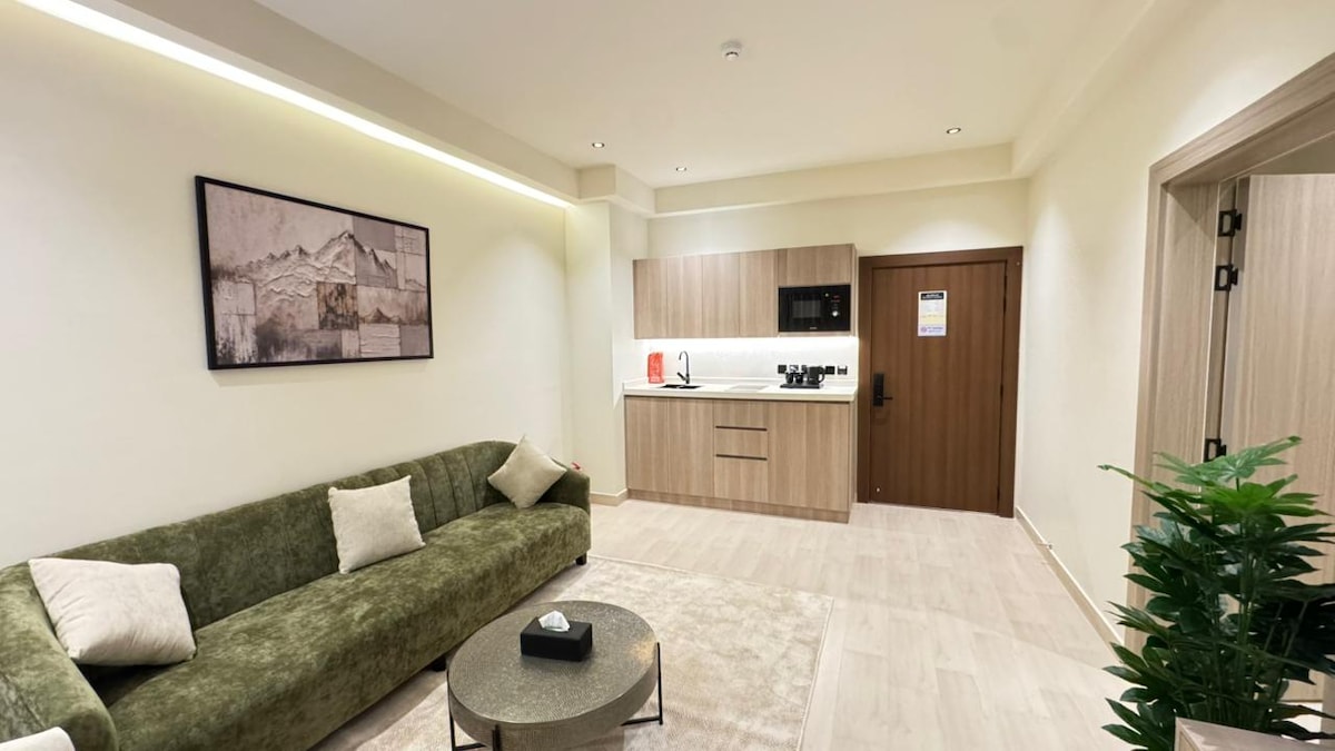 Насолоджуйтеся сучасним і комфортним перебуванням у цій квартирі, якою керує Welhost, в Аль-Улі. Кожне помешкання має простору спальню, затишну вітальню, повністю обладнану мінікухню та розумний замок для самостійного заселення, щоб прибуття було безпроблемним. Квартира ідеально підходить для гостей, які шукають чистоту, приватність і зручне розташування.