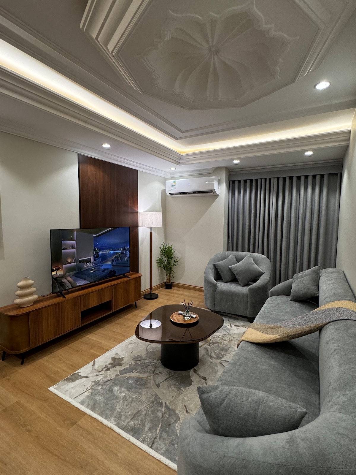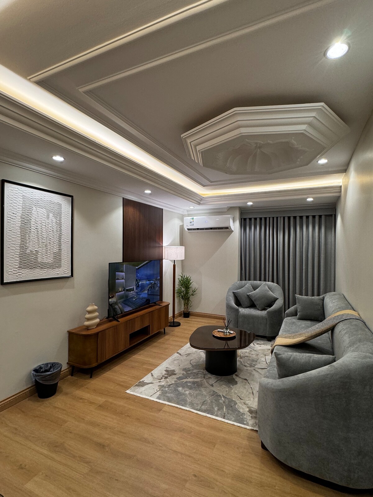 Ласкаво просимо до нашої розкішної квартири, У межах міста Пророка живіть розкіш і комфорт одночасно, де ми надали вам ідеальне поєднання сучасного комфорту, незалежно від того, чи ви тут для роботи, чи для відпочинку, наше ретельно спроектоване житло гарантує вам незабутнє перебування, оскільки воно знаходиться приблизно в 4 хвилинах їзди на машині та 18 хвилинах пішки від мечеті Пророка, а також розташоване в центрі міста та посередині головної вулиці, що полегшує гостям доступ до всіх послуг, магазинів та ресторанів.
