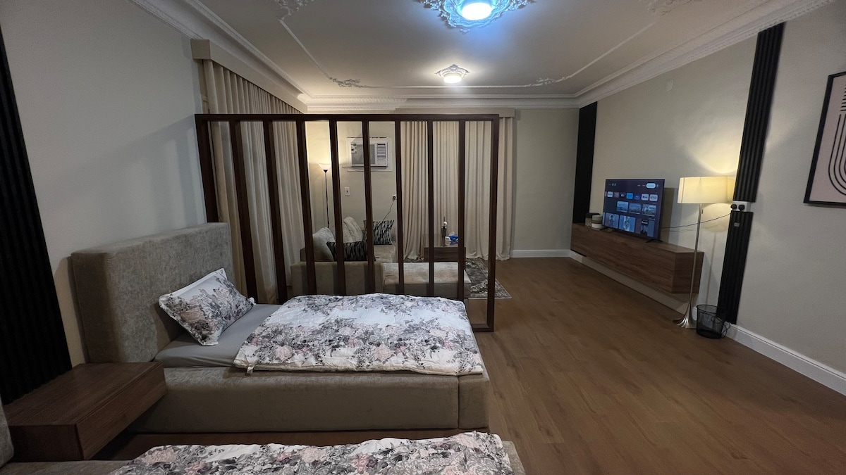 - Квартира-студія простора та комфортна. - Студія розташована на першому поверсі. - У квартирі є Wi-Fi до 100 Мбіт/хв. - Квартира знаходиться в 9 хвилинах їзди на машині від мечеті Пророка, 4 км. Таксі через (Uber + Creeam + Jeeny) Це коштуватиме вам лише 15-30 ріалів.(4-8 доларів США). - Студія розташована біля вулиці Султана, найвідомішої вулиці Медини, всього за 200 метрів ви знайдете все, що вам потрібно Аптеки Ресторани Кава Шопінг Ми, безумовно, будемо раді допомогти вам протягом дня, щоб зробити ваше перебування приємним