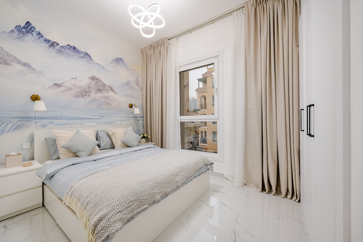 Сучасна квартира з 2 ліжками в The Marina Torch з вікнами від підлоги до стелі та спокійним, сучасним оздобленням. Зручності курортного типу внизу, басейн з видом на горизонт, справжній тренажерний зал, сауна та парна кімната. Будівля виходить прямо на набережну Марина-Вок, де розташовані численні кафе та ресторани міжнародної кухні. Фантастично підходить для розслаблюючої вечірньої прогулянки, яка, звісно, закінчується в Marina Mall. Стильна центральна база в Дубай-Марині для сімей, пар або бізнес-мандрівників.