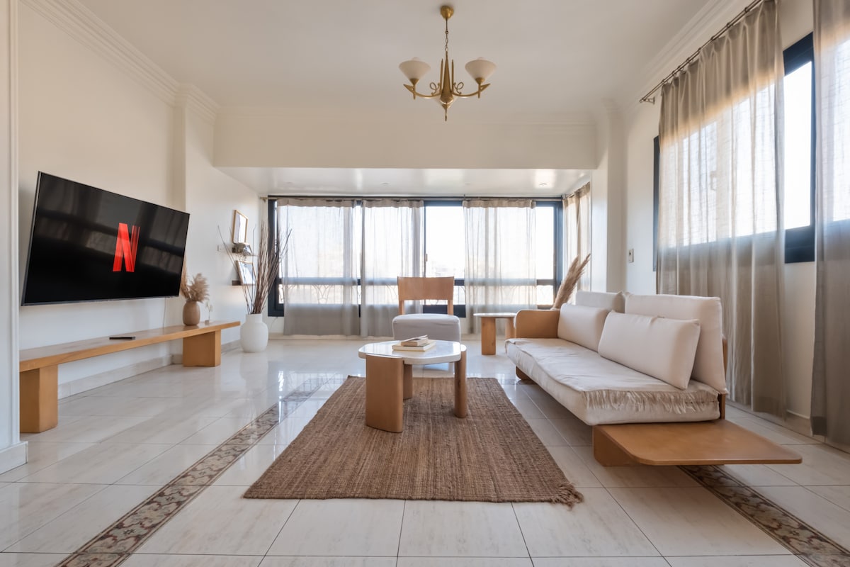 Ласкаво просимо до вашого розкішного відпочинку в Гізі! Ця сучасна студія ідеально адаптована до стилю та функціональності, об 'єднуючи сучасний дизайн з елементами, натхненними багатою спадщиною фараонів. Це помешкання, розташоване недалеко від Великих пірамід і Великого музею, є ідеальним місцем для відпочинку для тих, хто цінує комфорт, оточений культурою.