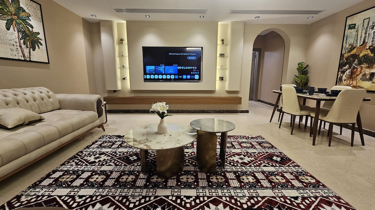 Ласкаво просимо до нашої розкішної квартири, У межах міста Пророка живіть розкіш і комфорт одночасно, де ми надали вам ідеальне поєднання сучасного комфорту, незалежно від того, чи ви тут для роботи, чи для відпочинку, наше ретельно спроектоване житло гарантує вам незабутнє перебування, оскільки воно знаходиться приблизно в 4 хвилинах їзди на машині та 18 хвилинах пішки від мечеті Пророка, а також розташоване в центрі міста та посередині головної вулиці, що полегшує гостям доступ до всіх послуг, магазинів та ресторанів.