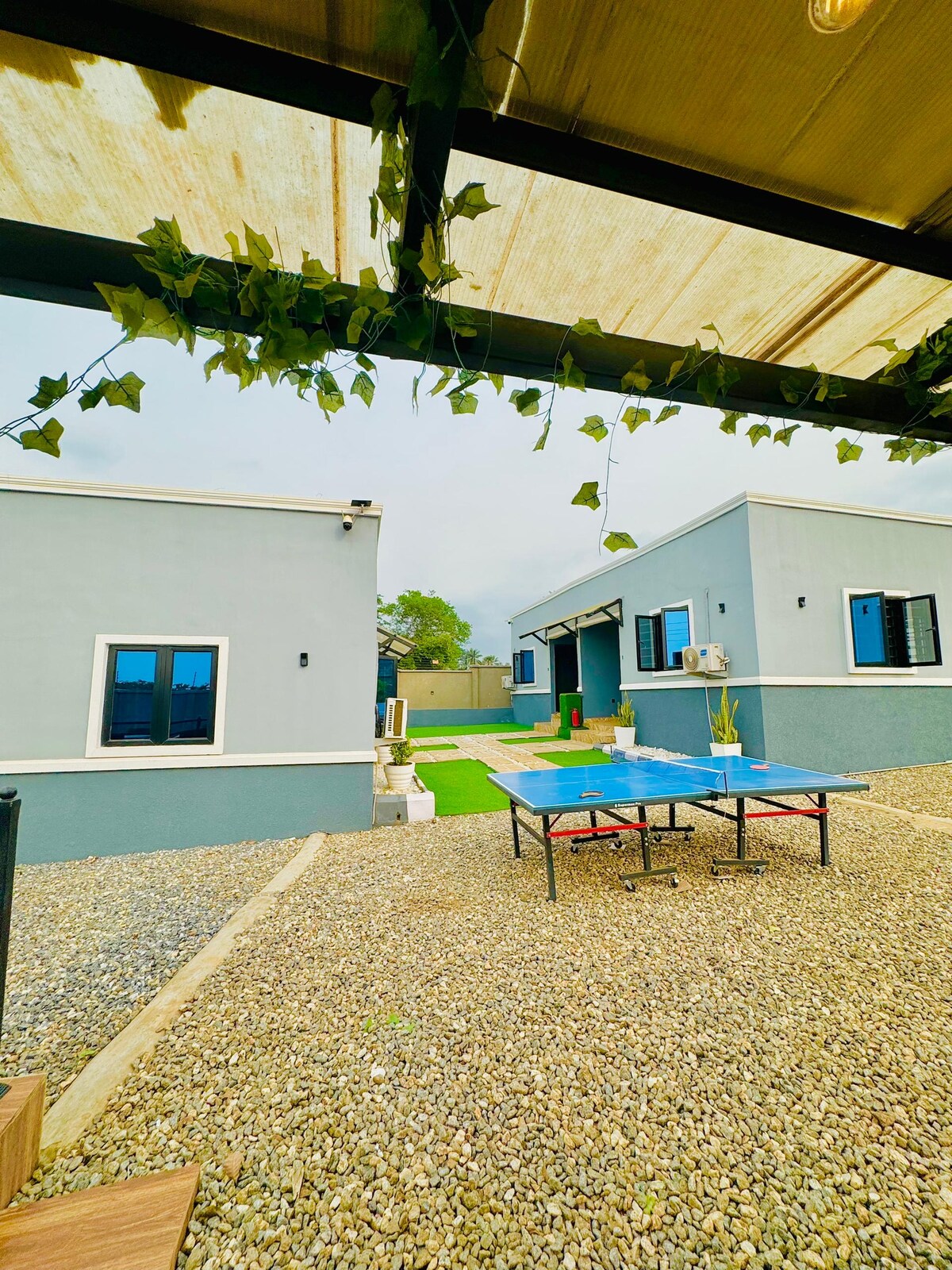 GolfVilla Abeokuta is a beautifully furnished, modern 3-bedroom short let Villa on 1300sqm property, located in the hills of Oke Mosan, Abeokuta, Ogun State. - Big screen TV & Satellite decoder in every room - Fitted Kitchen - Washing Machine - WiFi - Board Games - Private Swimming Pool - Table Tennis - Outdoor Grill Station - Close to Abeokuta Golf Club - Free Golf Cart - Outdoor CCTV - Electric Perimeter Fence - 24 Hours Electricity - Armed Guards - Complimentary Train Station Transfer