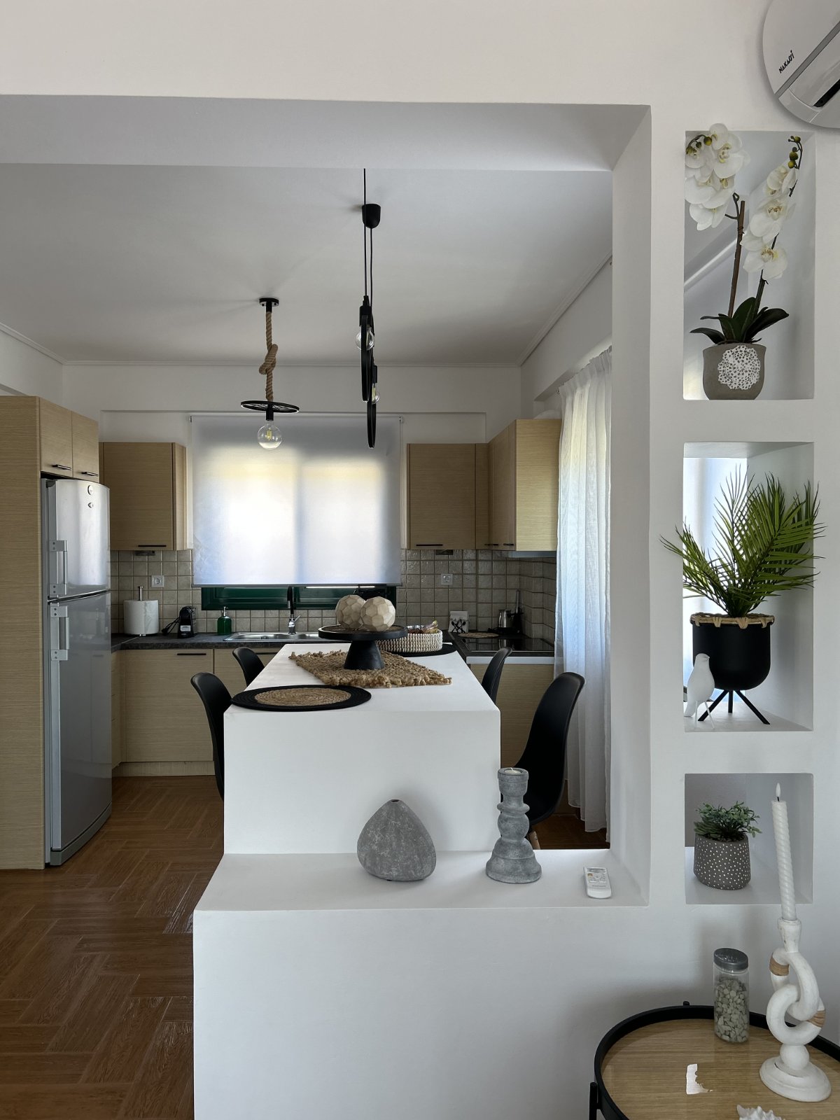 М 'яке світло, морський бриз і місце для видиху. Це прибережне помешкання площею 120 м² розраховане на 8 місць і пропонує прямий доступ до тихого галькового пляжу всього в декількох кроках від дверей. Золотий піщаний берег чекає на 50 секунд пішки. Розслабтеся біля вогнища, пообідайте з видом на море за кам 'яним столом ручної роботи та насолоджуйтеся легкістю відкритих, просторих приміщень. Спокійний, незахаращений і тихий розкішний. Пандус для головного поверху. Лише 2 години їзди від Афін на човні або 2 години 45 хвилин на автомобілі. Нехай дні сповільниться, а море налаштує темп!