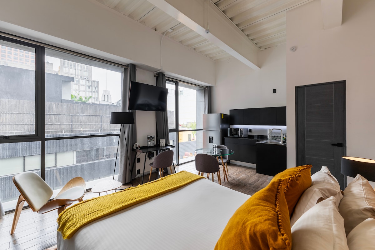Лофт із ліжком розміру King size, балконом та краєвидом на Парк Мексики