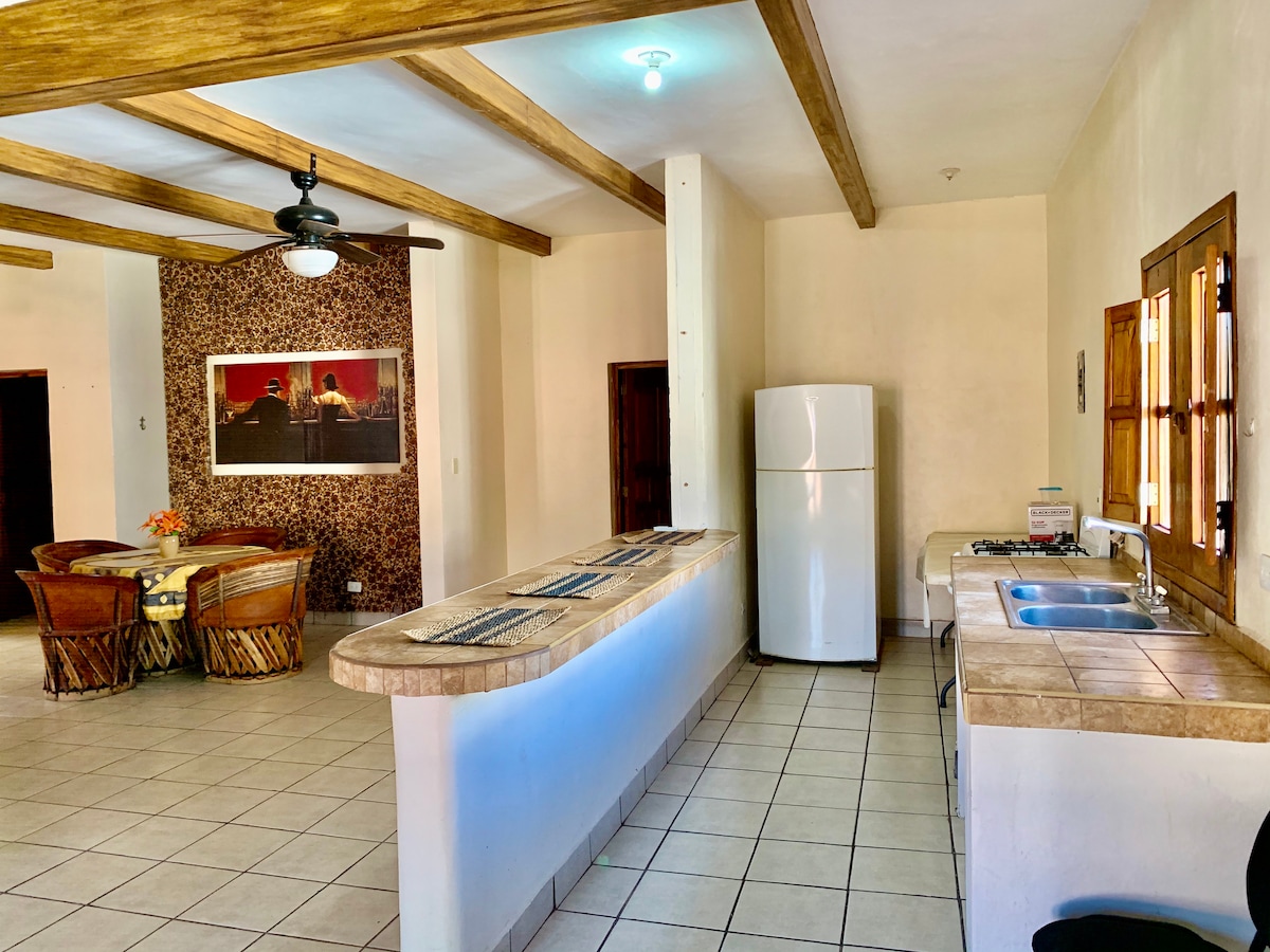 Красивий колоніальний будинок біля входу в чарівне селище Аламос, сонора, тихий район, який ідеально підходить для відпочинку та проведення часу з сім 'єю. Він розташований за п 'ять хвилин ходьби від магазину Oxxo та ресторанів, в 10-15 хвилинах ходьби від площі Аламос і Аламеди. Будинок розрахований на 16 осіб, до 4 додаткових людей можуть розміститися за 100 $ кожна