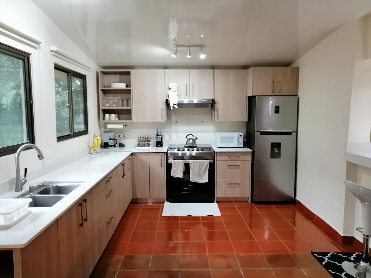 Відпочиньте всією сім’єю в цьому тихому місці, всього за 10 хвилин від центру міста Давид і за 25 хвилин від туристичного Бокете. Дуже близько ви знайдете торгові центри, ресторани та послуги, але досить далеко від міської метушні. Безпечний, комфортний і повний деталей простір, де ви зможете насолодитися перебуванням. Безпечний будинок з 3 спальнями, терасою в стилі кафе-бару, патіо з грилем і альтанкою, кондиціонерами та всіма зручностями для насолоди перебуванням.