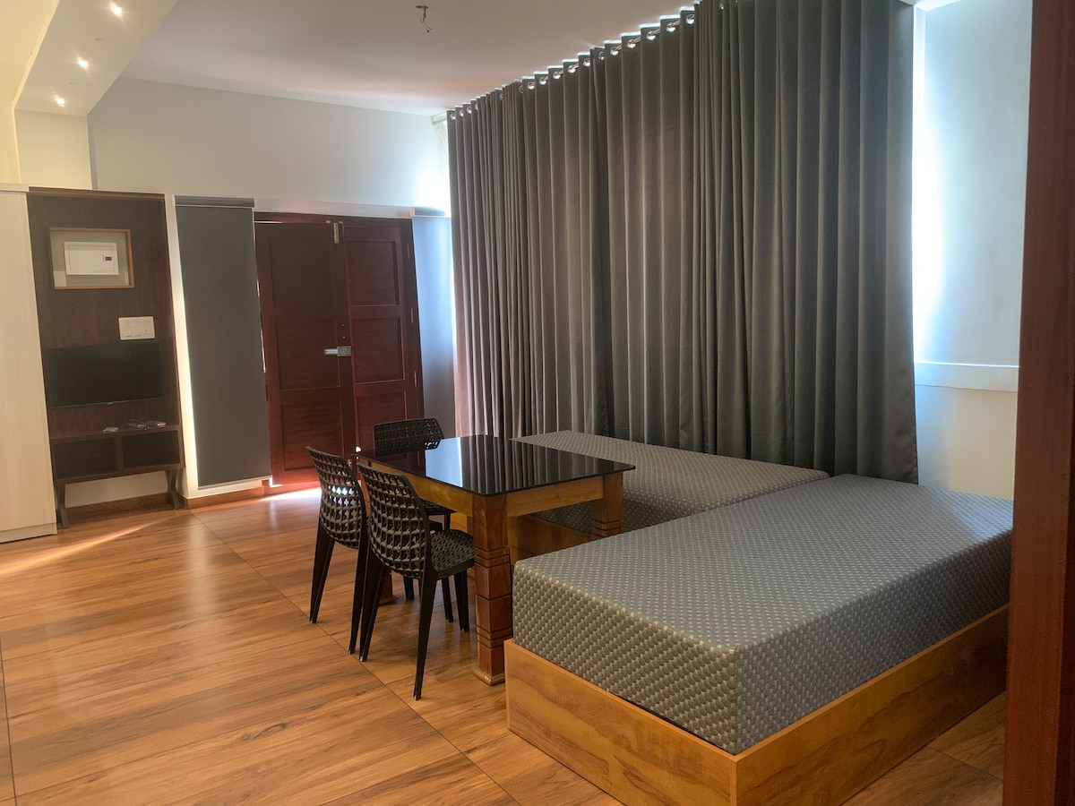 Красива квартира-студія в Ернакуламі, спокійне та комфортне місце відпочинку, ідеальне для пар, невеликих сімей або індивідуальних мандрівників, які шукають приватності та зручності. Незалежно від того, чи ви подорожуєте у справах, з метою лікування, для огляду визначних пам’яток чи тихого відпочинку, ця студія пропонує вам найкраще з обох світів – спокій і доступність
