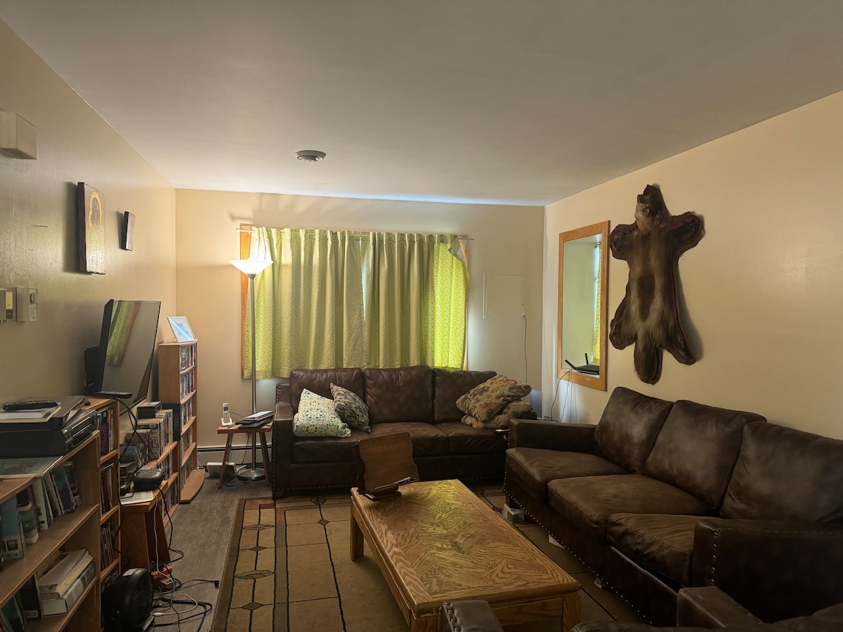 Кімната з двоярусними ліжками в хостелі Alyeska в Гірдвуді призначена для бюджетних мандрівників, які не проти ділити простір. Надаються постільна білизна та ковдри. СПАЛЬНИКИ НЕ ДОЗВОЛЯЮТЬСЯ. Можна попросити про розташування спального місця (верхнє або нижнє), але це не гарантовано через інших гостей, які мають пріоритет. Спільна кухня, загальна зона та 2 ванні кімнати з душем. 1 миля пішки до курорту Alyeska або півмилі до зупинки автобуса. Розташована в житловому районі. Рухайтеся повільно (20 миль/год або менше). Прибуття з 16:00 до 21:00.