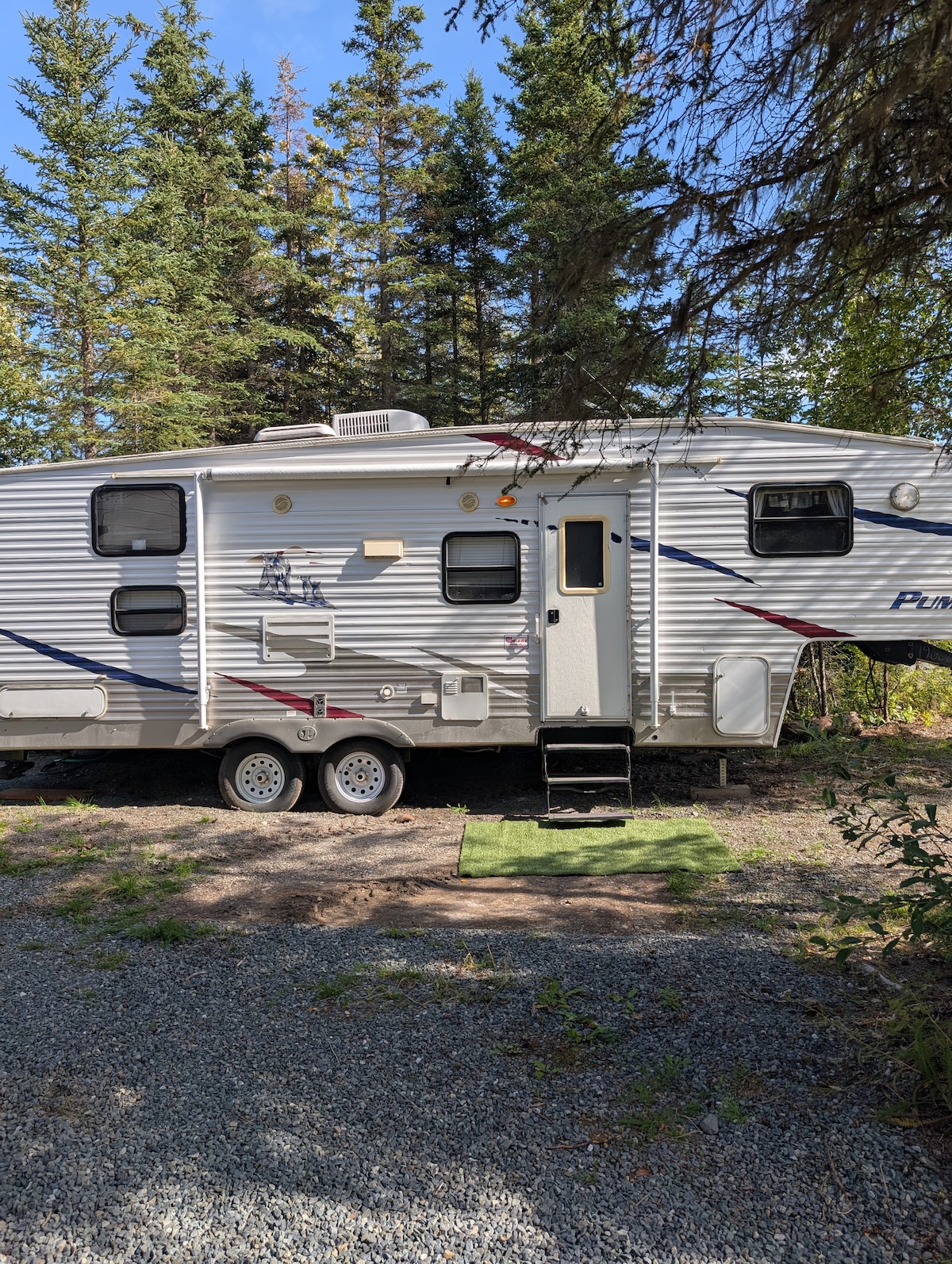 Вінтажний трейлер Єллоустоун 1973 року, відремонтований для комфорту дикої природи та найкращих вражень від глемпінгу! Розташований у лісі, почуйте місцеву сову вночі, а потім грайте з хаскі вдень! Вода надається для приготування їжі та прання, але ви можете насолоджуватися на вулиці або пройти кілька хвилин до туалету RV Park з душовими кабінами! Пропанова плита та повністю обладнана кухня плюс свіжа мелена кава! Гриль для барбекю та вогнище з великою кількістю деревини та столом для пікніка ~Справжній Алясський досвід!